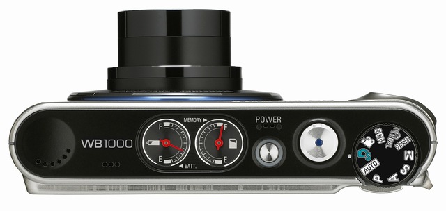 The two retro gages show battery life and capacity, and are intended to be more intuitively read at-a-glance. Meanwhile the WB1000 is also capable of recording 720p H.264 video, which also takes advantage of the camera's dual optical and digital image stabilization.