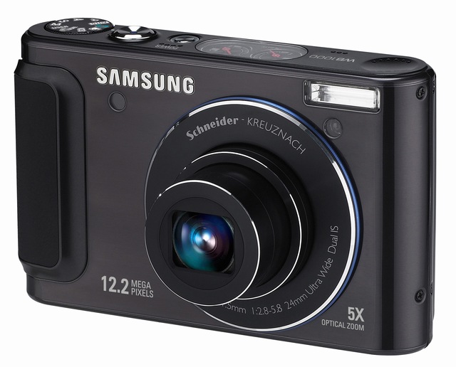 Samsung have unveiled a new digital camera that rocks its distinctive dual-analog-gage indicators. The Samsung WB1000 has a 12.2-megapixel 1/2.33-inch CCD paired with a 24mm wide-angle Schneider-KREUZNACH lens and 5x optical zoom, together with a 3-inch AMOLED 480 x 260 display around the back.