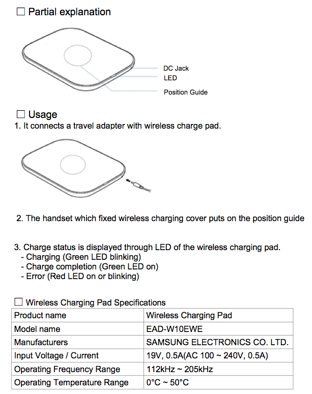 Interestingly, Samsung doesn't appear too bothered about confidentiality at this stage. According to the company's cover letter to the FCC, the only aspects of the EAD-W10EWE pad that need to be kept secret are the block diagram, operational description, schematics, and part list. Everything else – including the terse user guide, which basically amounts to "plug it in and put your phone on it" is left open.