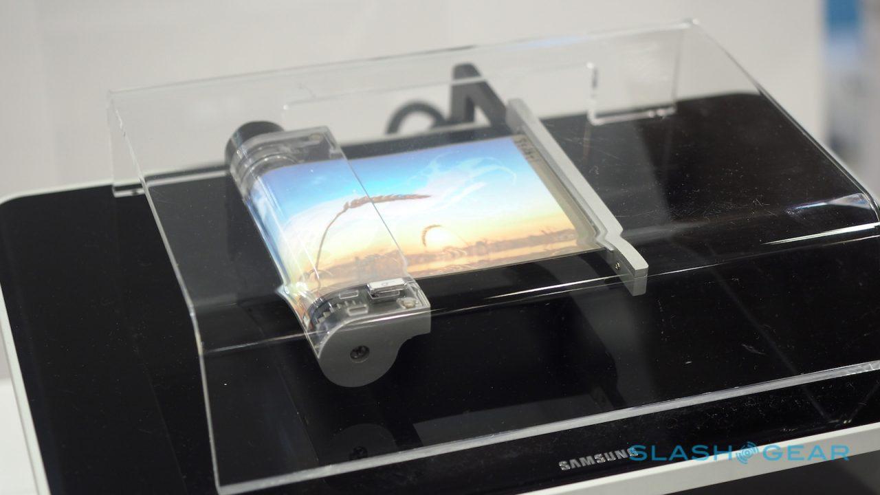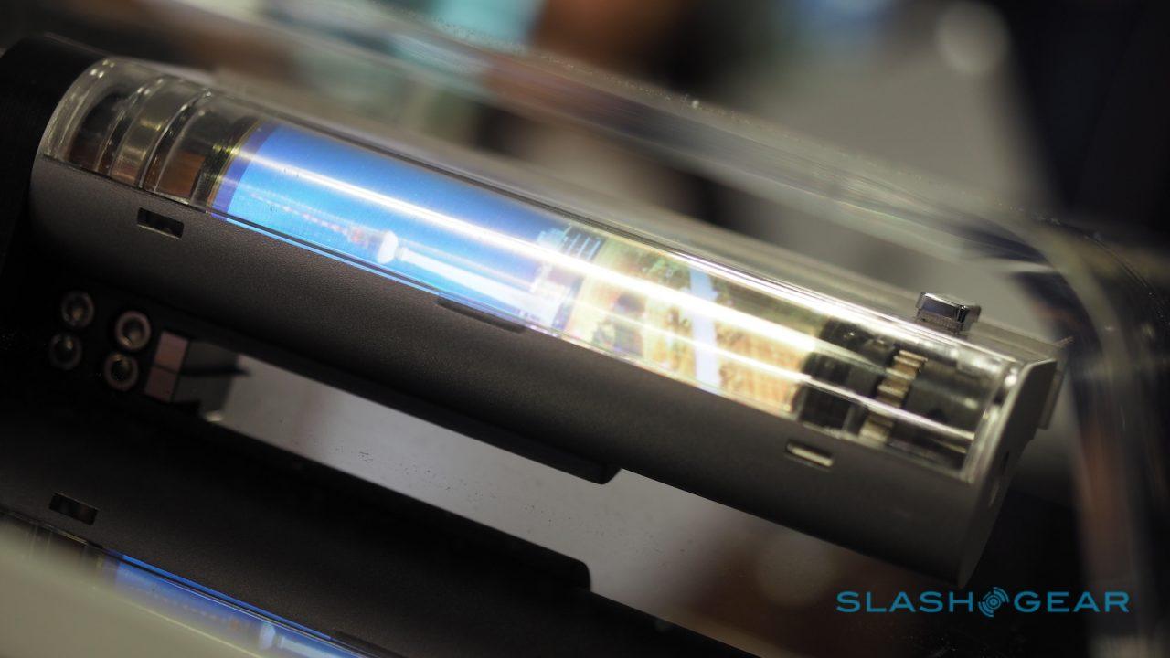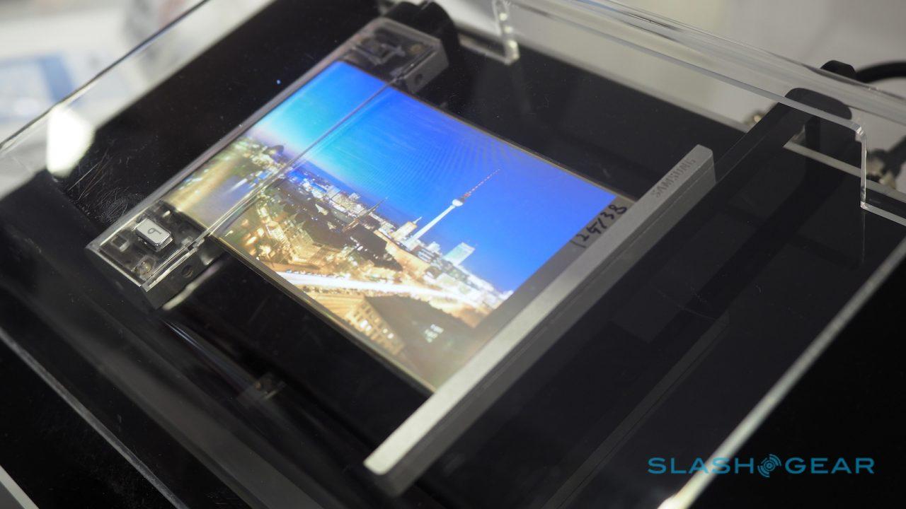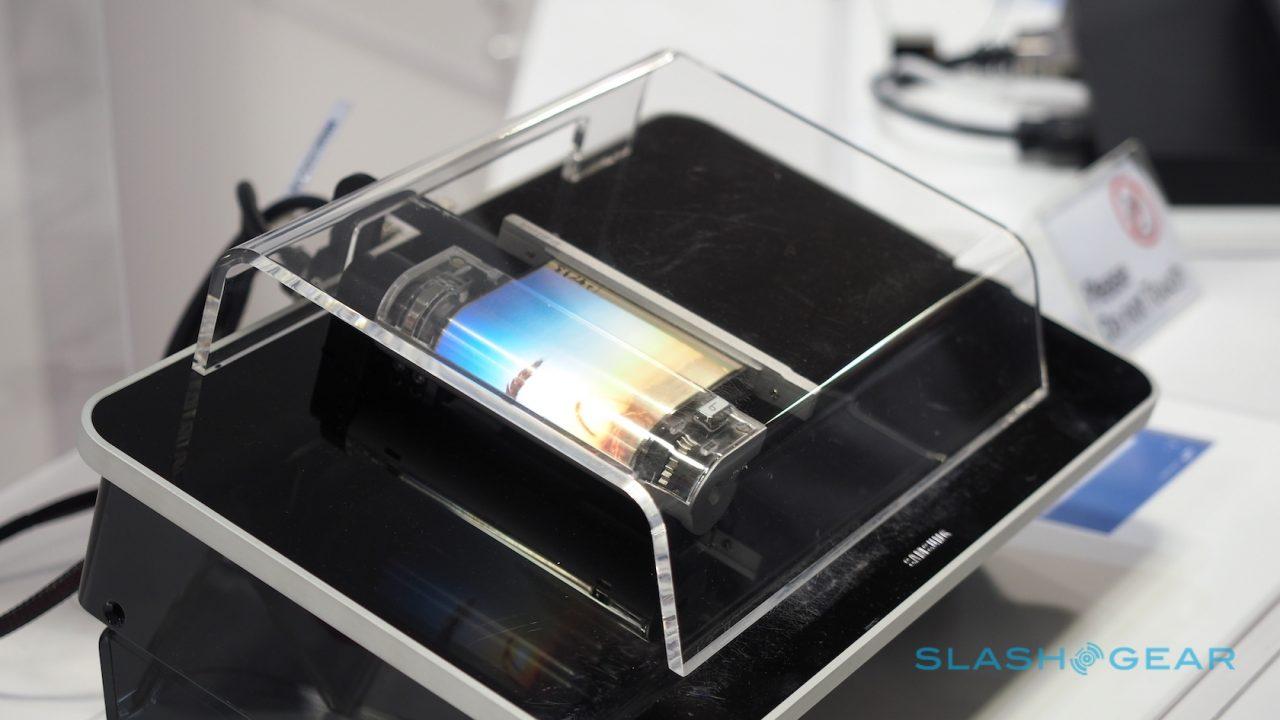 Here in 2016 we've also got the Samsung Display rollable OLED prototype. As you'll see in the video above, this is not just a flat, one image only sort of screen. It's ready to receive data.