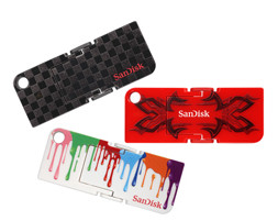 The Cruzer Facet USB flash drive emphasizes personality and fashion, featuring a stainless steel casing along with a colorful faceted texture. It is available in 8GB to 32GB capacities priced from $32.99 to $84.99. Similarly geared towards style, is the Cruzer Pop USB flash drive, which is hoping to appeal to younger consumers. It has a unique "pop" open design and comes in rich colors and patterns. It is SanDisk's thinnest USB drive and comes in 8GB to 32GB capacities, priced from $32.99 to $84.99.