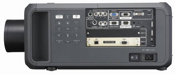 Connections include HDMI, DVI-D, VGA, BNC x5 (RGBHV and VIDEO/Y-Pb/Cb-Pr/Cr), S-Video, USB and ethernet. There's also a VGA monitor-out port, and a serial port for systems integration. Sanyo's optional Wireless HD system slots into the expansion port. This can funnel 1080i or 720p HD video from 30m away.