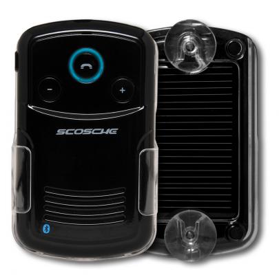 And by everyone, we mean it. Considering the way the government is cracking down on cell phone usage while driving, and especially texting, handsfree devices need to improve so that people will want to use them. And while many people might not want to wear those earpieces, or have their phone's speakerphone on all the time, Scosche has the answer for you: a Bluetooth speakerphone that attaches to your windshield, so that the solar panel on the back can keep your battery fully charged all day long.