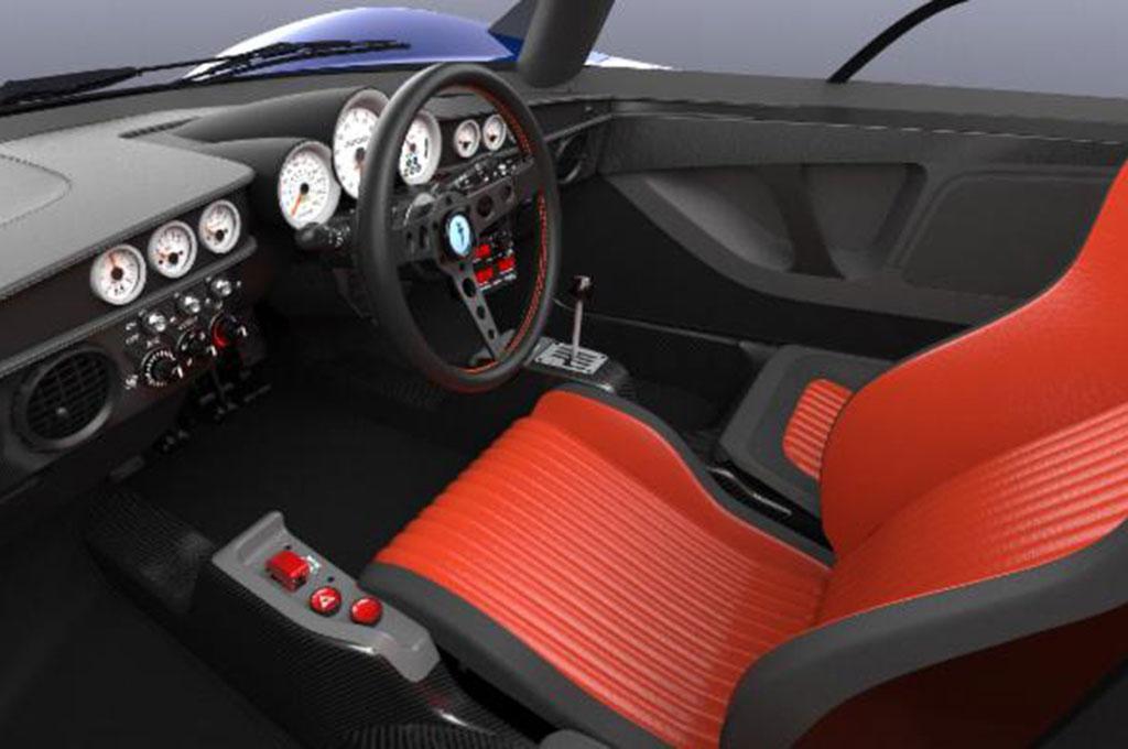 The manual transmission has a gated shifter that looks like something out of an old Lamborghini. The gauges in the rendering are all manual with little digital crammed inside. The only modern conveniences that appear to be in the car are a rearview camera and an iPhone dock.