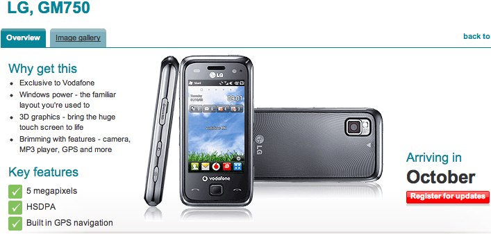 Pre-register at http://shop.vodafone.co.uk/shop/mobile-phone/lg-gm750 to jump to the front of the queue for the LG GM750.