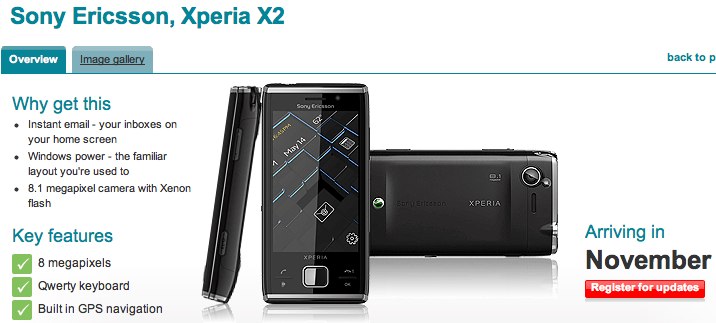 SE XPERIA X2, Nokia E72 And LG GM750 Preorders On Vodafone UK