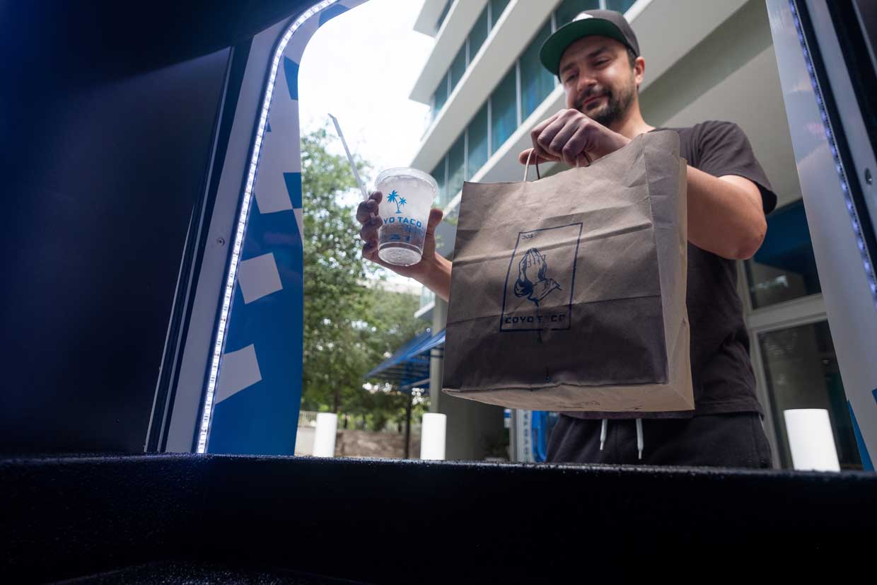 Currently, the Postmates pilot is being conducted in Miami and Miami Beach with over 70 business participating including Coyo Taco. When the person ordering requests delivery, they get the option of having the food delivered by Postmates using a self-driving research vehicle. The process has the user order and when the food is ready it is placed into the delivery vehicle and driven to the user, just as delivery always works.