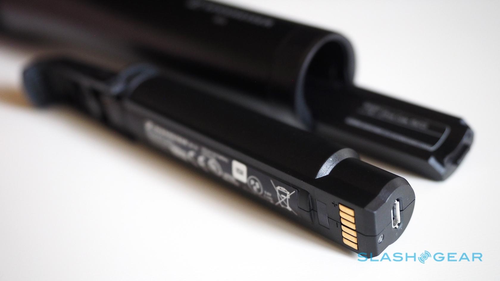 It's worth noting that the microUSB port on the receiver's battery is still accessible when it's plugged in, so you could feasibly run a USB cable from a larger portable battery to extend runtimes.