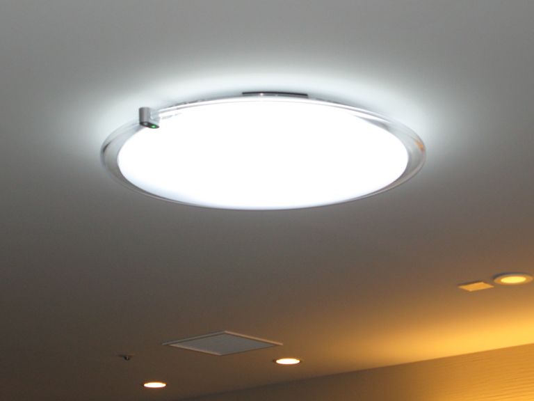 The Panasonic "Auto-eco Light-control Twin Pa" is not your typical round ceiling light, it's equipped with a luminance sensor and a microprocessor to calculate ranges and degrees of reflection (at initial setup), and amount of ambient lights so the lamp luminance output can be precisely adjusted at each second.