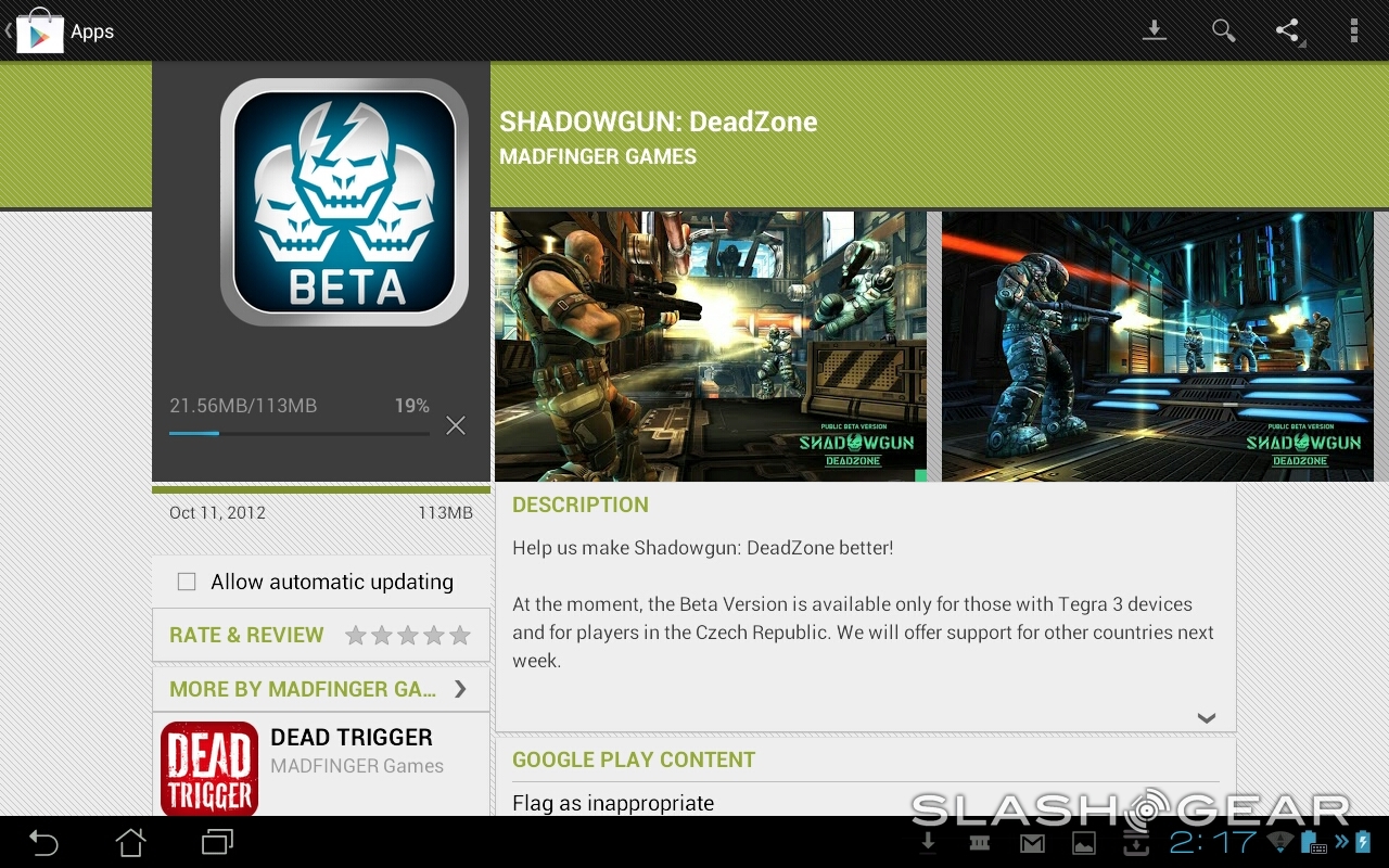 We've had our first look at the beta version of the first person shooter version of SHADOWGUN: DEADZONE, out in beta form on the Google Play app store for Tegra 3 devices exclusively. This game is the multiplayer version of the benchmark-quality shooting game SHADOWGUN that's been optimized for NVIDIA's Tegra 3 quad-core processor on the market for some months – now you'll be able to take your Transformer Prime to the web to shoot em up in real-time! This game is absolutely free – for now – and is available for download right this minute.