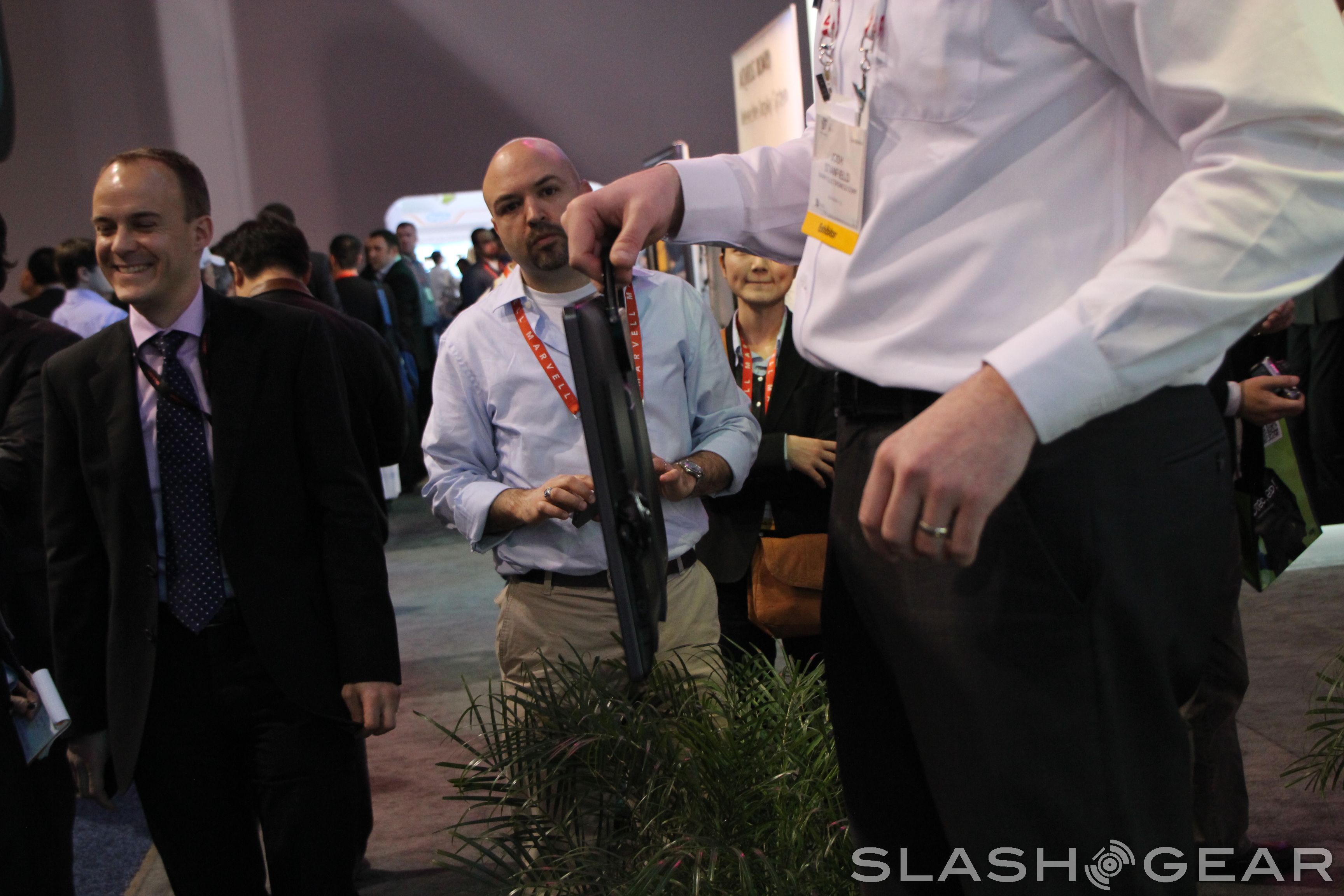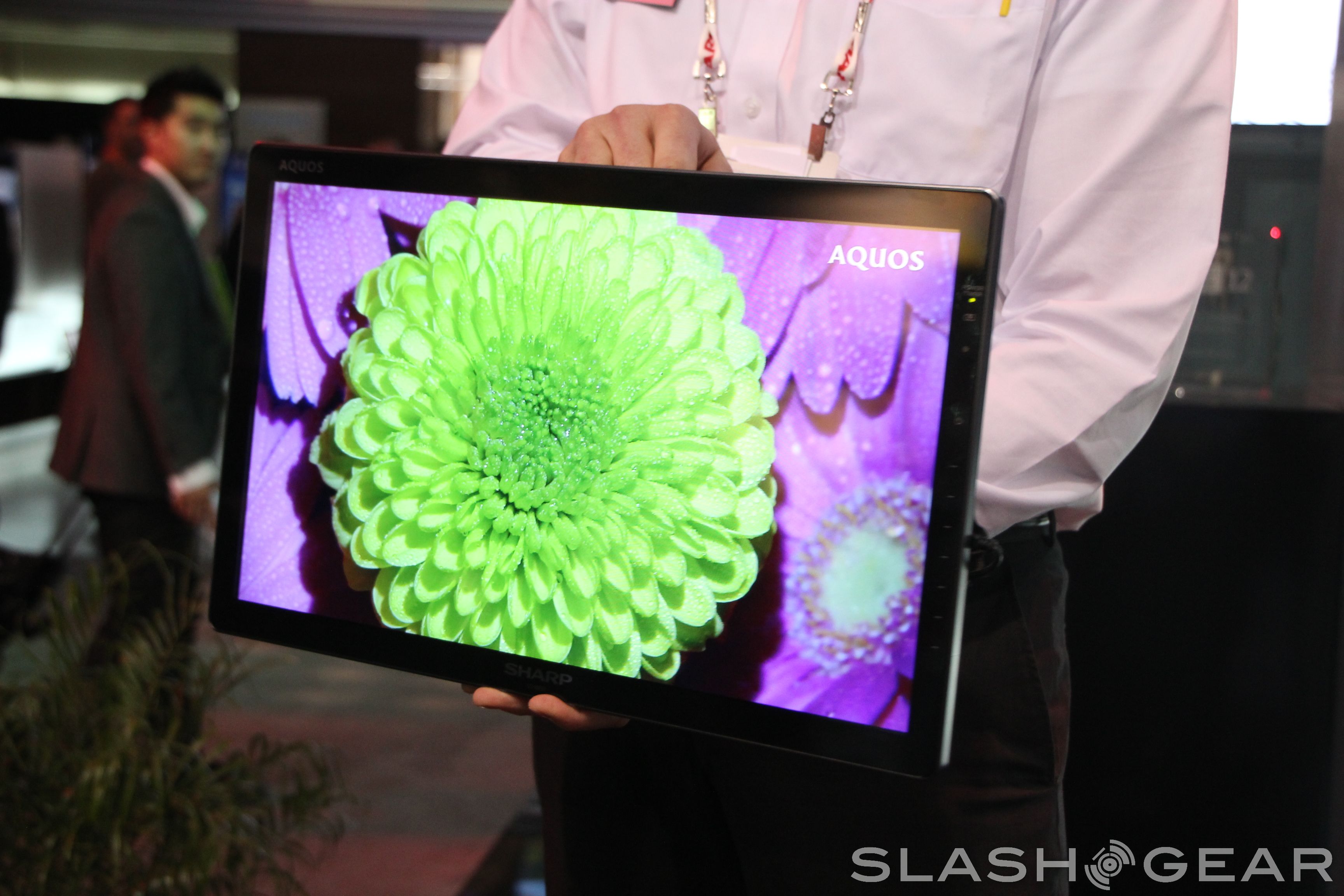 It's a simple concept that Sharp has paired with features that make it truly useful. A carrying handle and kickstand make it easy to move and set up, and support from Sharp's remote hardware make it easy enough to get content to the screen from close range. The base station connects to the television via its own private WiFi connection, and can handle video from standard HDMI or RGB inputs.