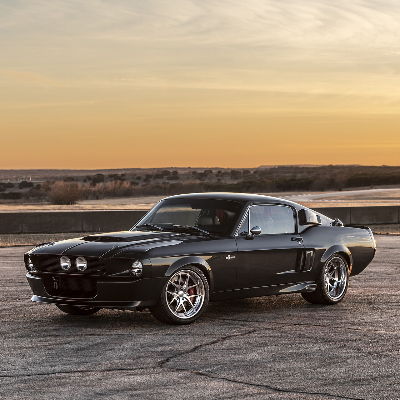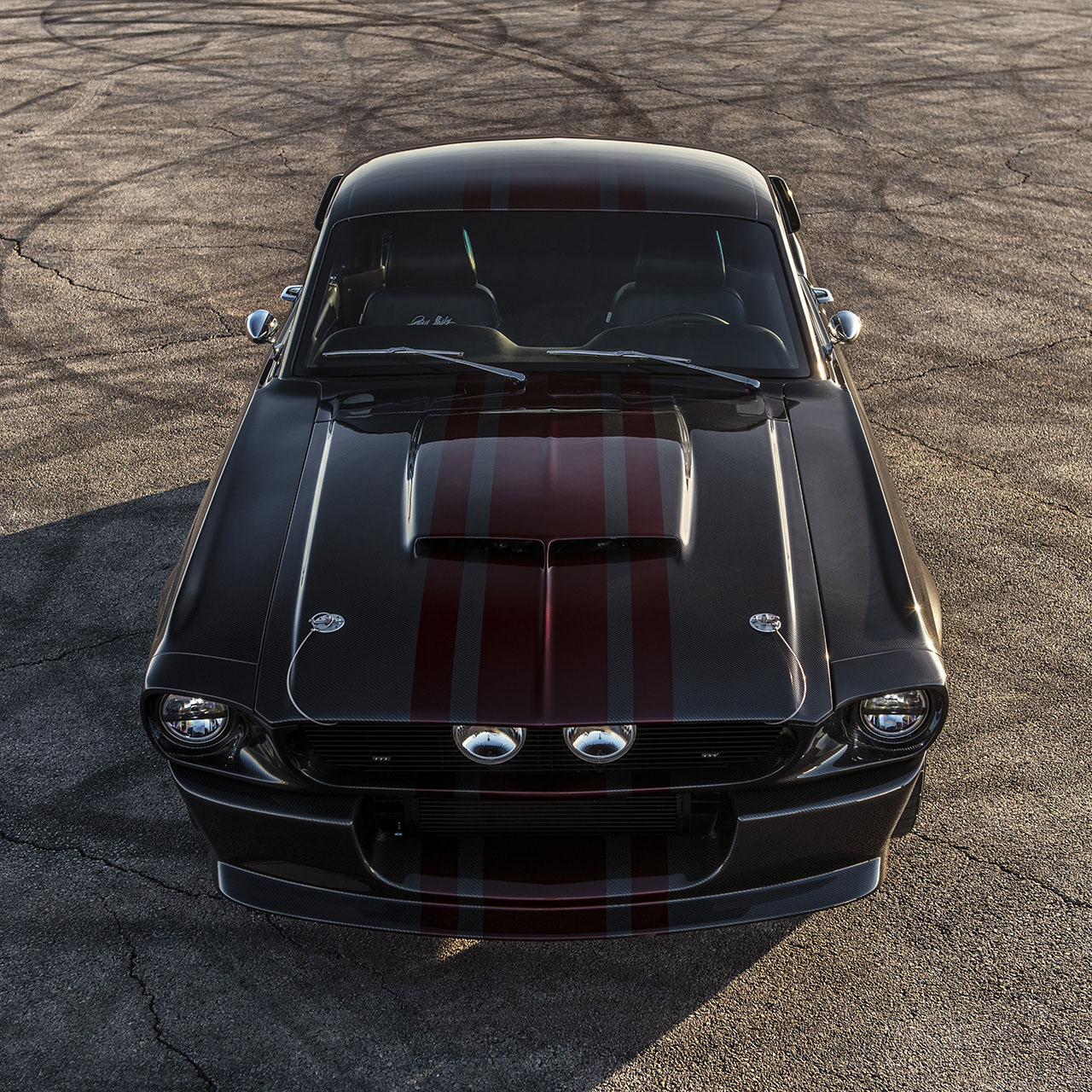 Each of the engines is custom-tuned on a dyno to produce 810 horsepower. The manual transmission is a Tremec six-speed unit that feeds power to a nine-inch Fab 9 rear with a 3:70 gear ratio and positive traction. The engine uses a serpentine belt system and a fuel system with twin electric fuel pumps. Shelby fits the cars with modern disc brakes all around and Stainless Works long tube headers.