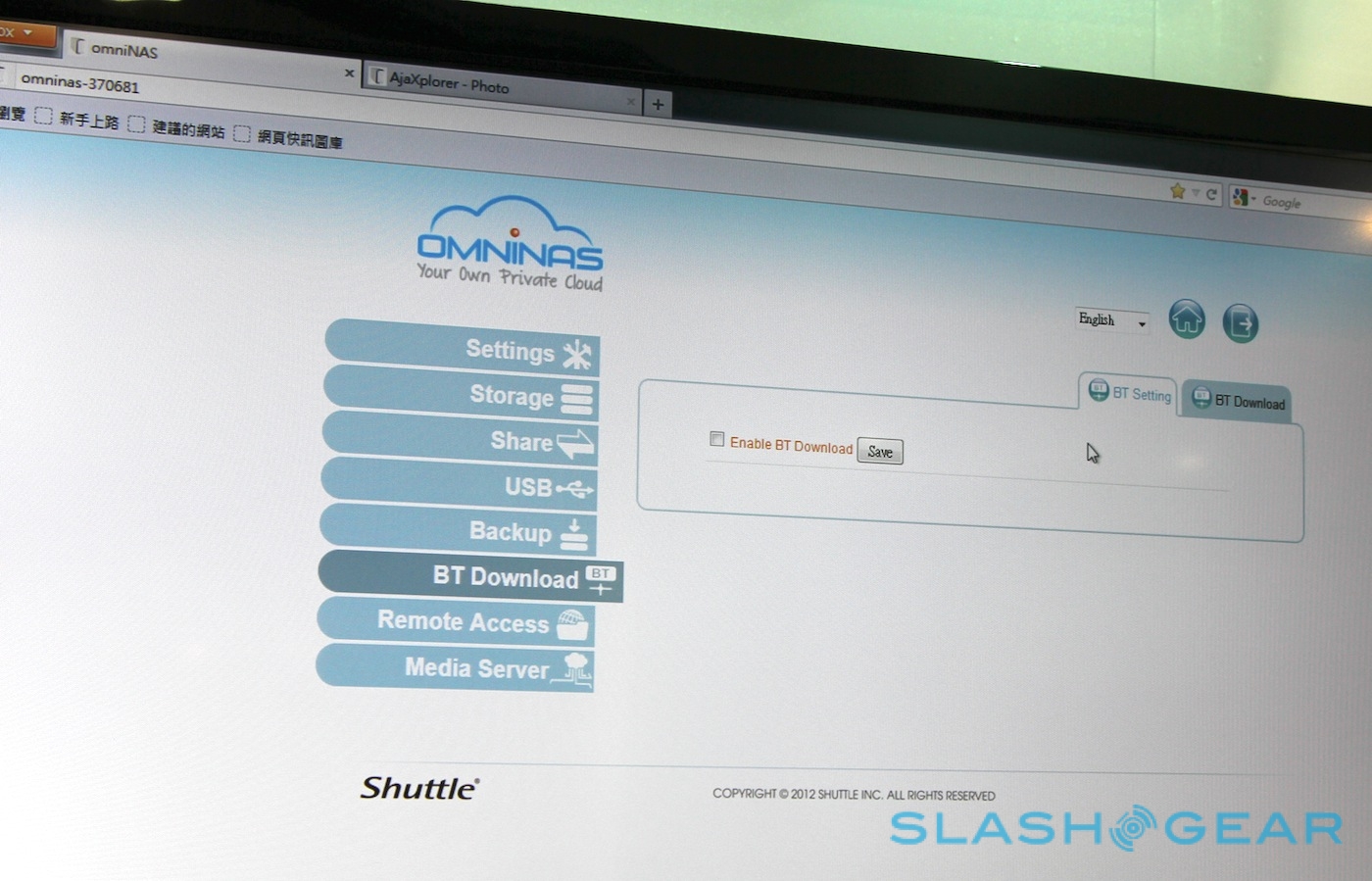 As for the user-interface, as you'd expect it's browser-based. There's support for standalone BitTorrent downloads and DLNA media-server functionality, and Shuttle will offer iOS and Android apps for phones and tablets.