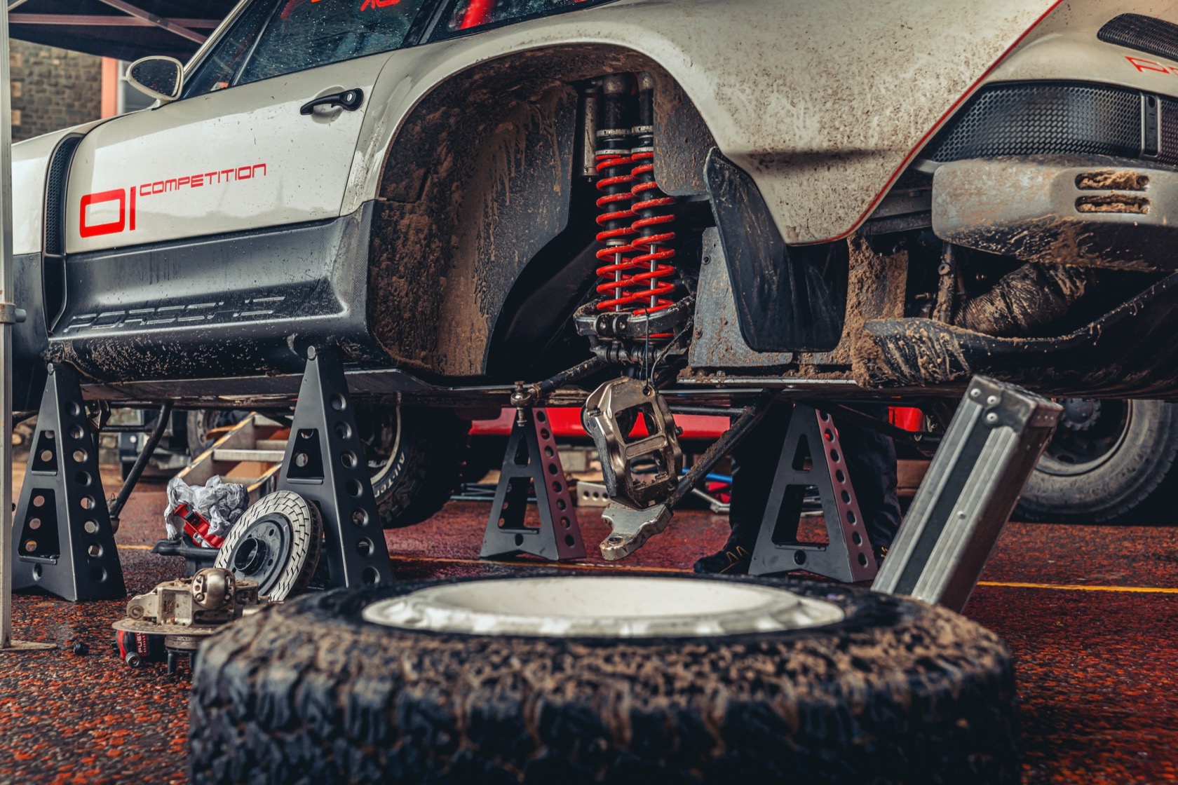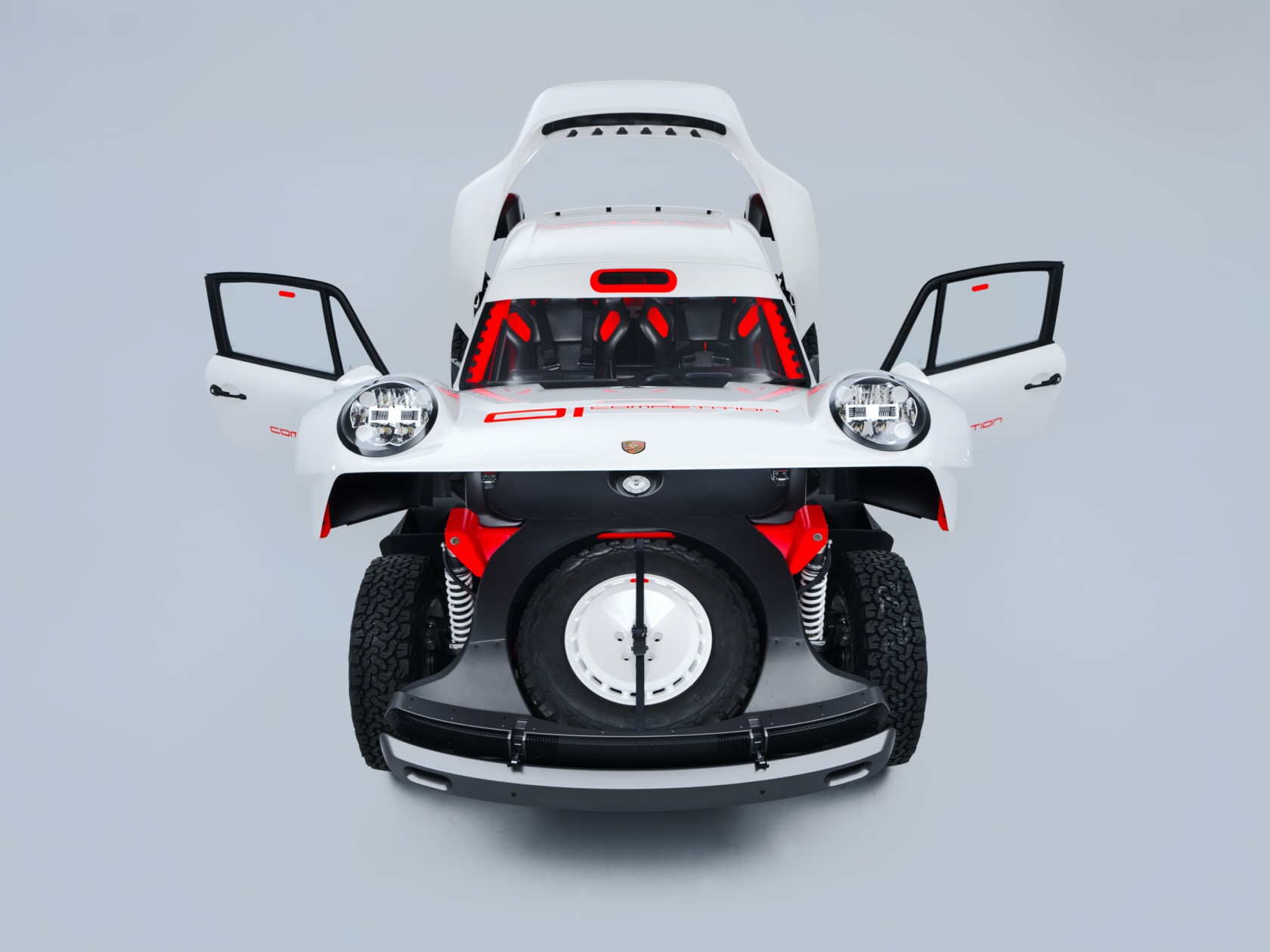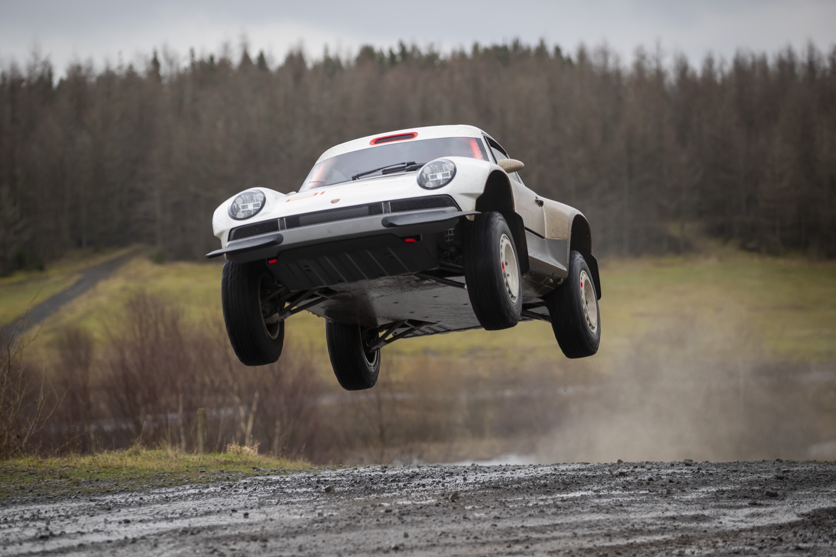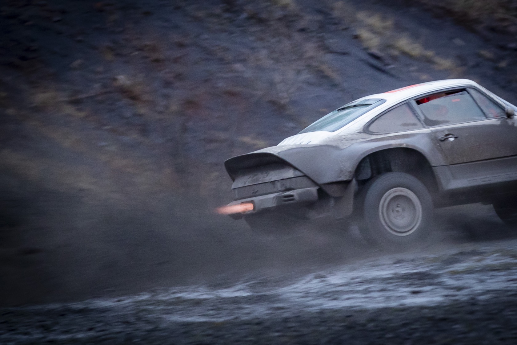 The engine is a 3.6-liter twin-turbo air-cooled flat-six, with 450 hp and 420 lb-ft of torque. Permanent AWD gets front, center, and rear limited-slip differentials, plus a racing-spec 5-speed sequential transmission. A long-range fuel tank ensures plenty of time away from the more humdrum world, and more out in the snow, rocks, and ice.