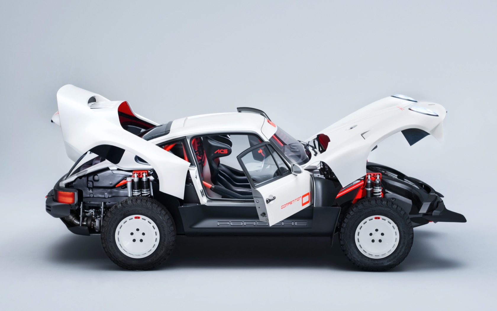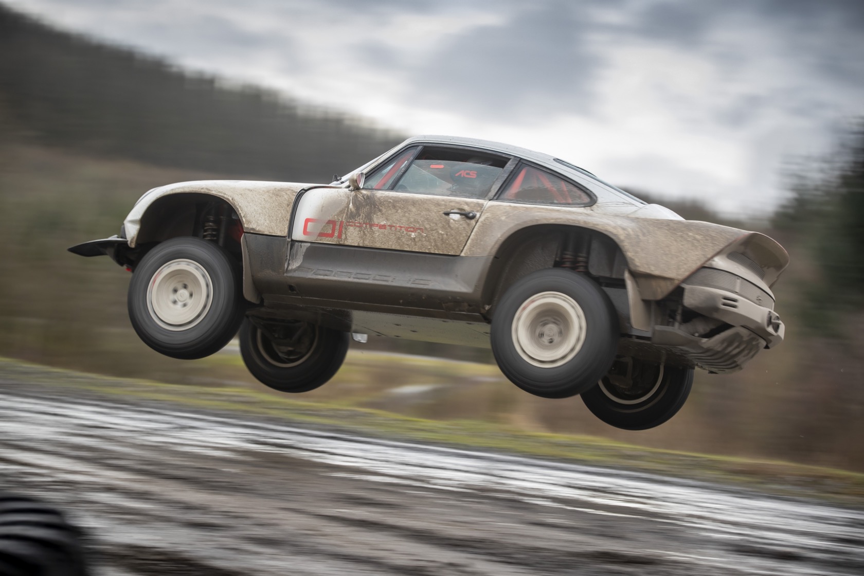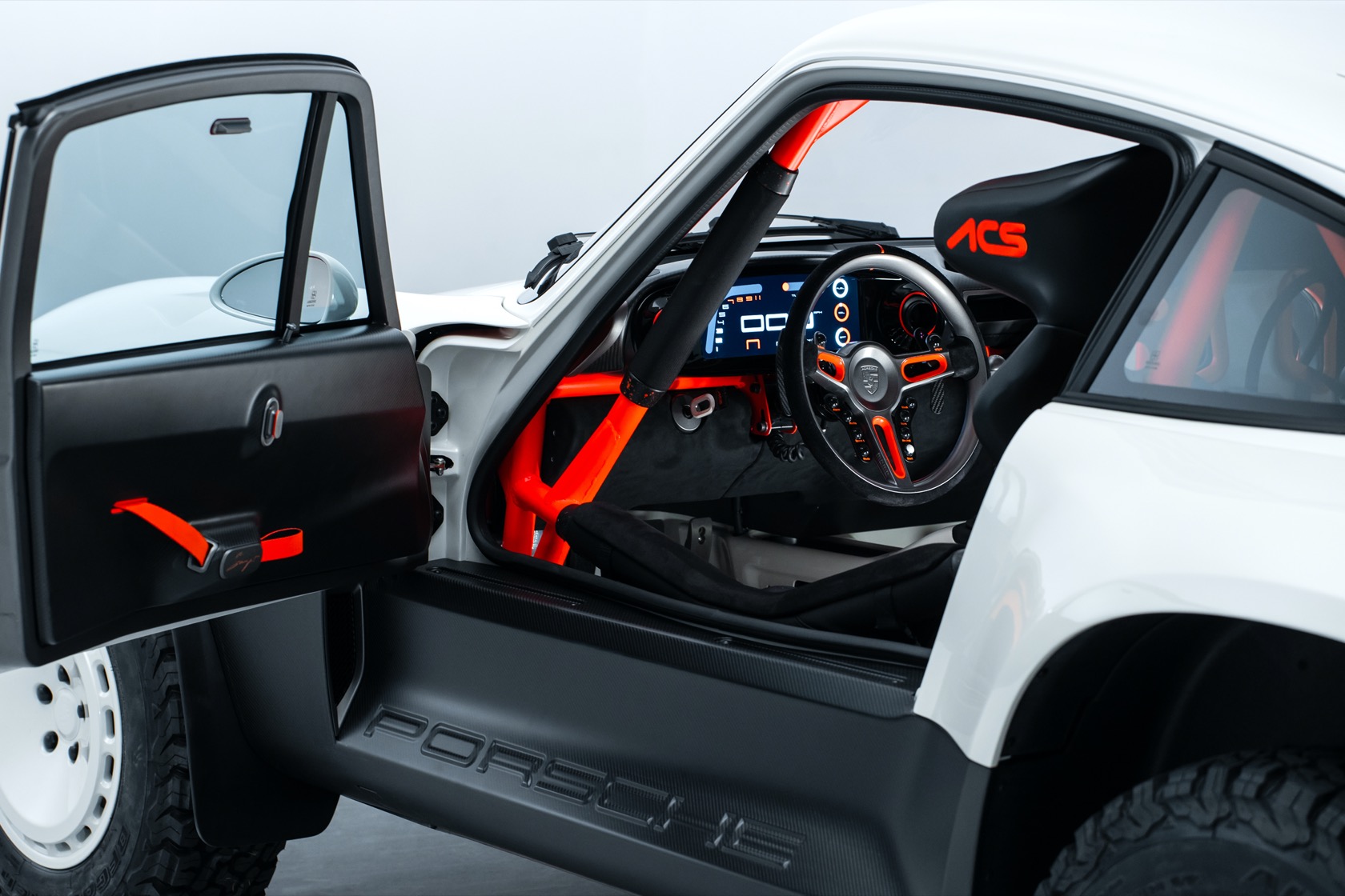 It's a Porsche 911, but not like any other you might have seen. Handiwork of restoration specialists Singer, the All-terrain Competition Study (ACS) takes a 1990 Type 964 911 and outfits it for off-road mayhem. That means a custom upgraded monocoque, FIA-spec roll cage, and carbon fiber body panels.