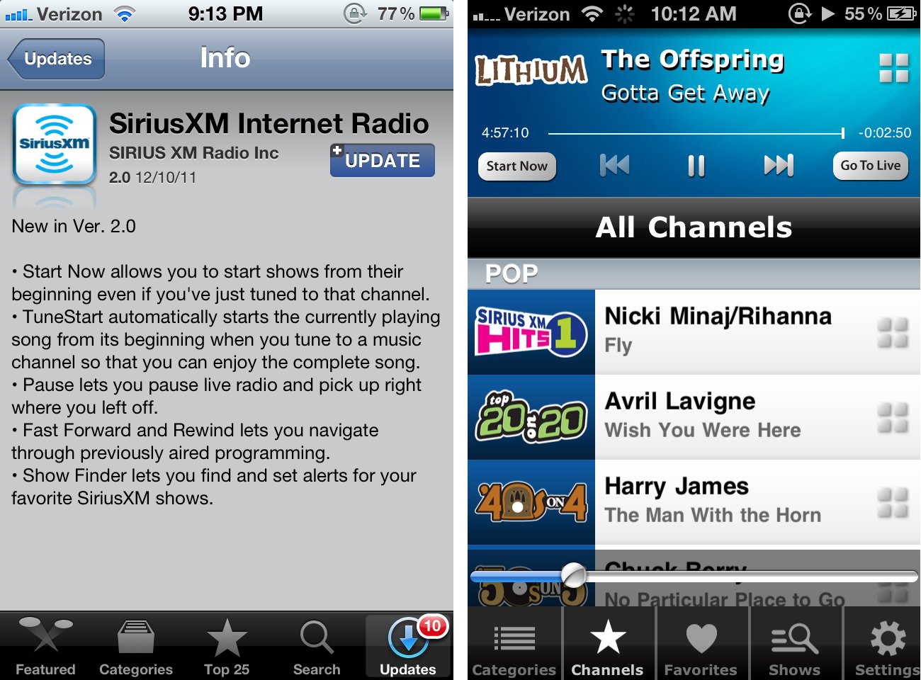 SiriusXM has released a new version of its iOS app, with v2.0 bringing the ability to jump back to the beginning of a show or song, even if you tune in partway through it. The updated internet radio app adds Start Now and TuneStart, different names for basically the same time-shifting functionality: if while channel-surfing you come across a show or a track you wish you could hear all of, new buttons allow you to flip between hearing it from the beginning or listening live.