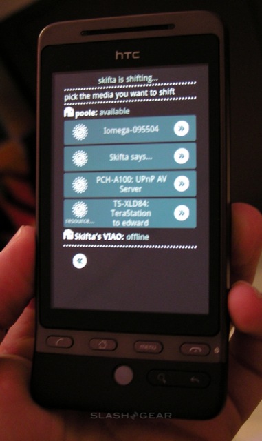 One of Qualcomm's more low-key demonstrations from today is actually the one thing you can try most readily yourself. Skifta aims to make media shifting more straightforward, using a single client PC or Mac that can then be accessed by any DLNA and UPnP client in your home or remotely. The system works using a simple web-based interface which will work on your desktop or cellphone browser (the Skifta team had an HTC Hero on hand to do just that), and then that content from pretty much any DLNA device gets funnelled around.Video demo after the cut