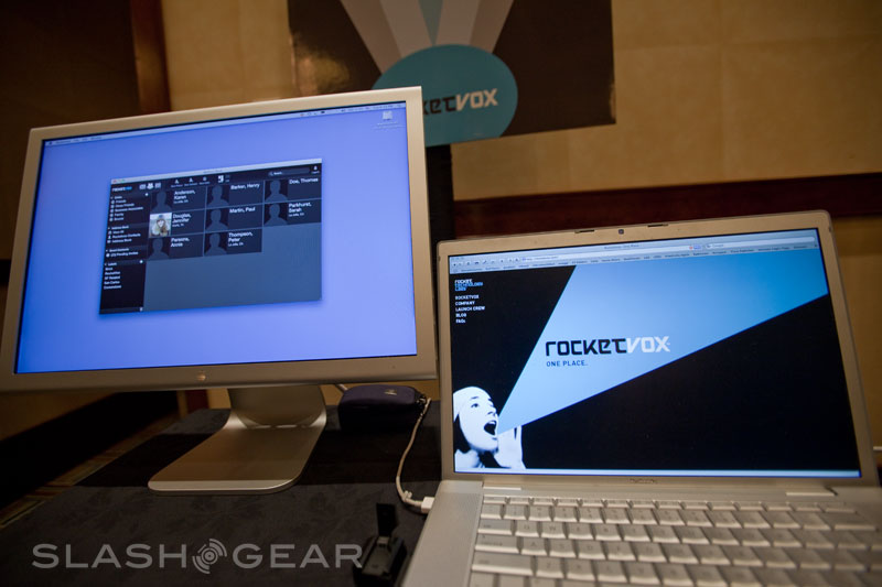 Our first pick of the evening is Rocketvox. Rocketvox is an online service that allows users to compile their cellphones, fax, texts, email accounts, calendars, chat accounts, voice mail, Twitter accounts, etc. into a single aggregate service which can be accessed anywhere on the internet. For the voice services, it offers much of the same service as Google Voice, forwarding phone calls and texts to multiple devices. Rocketvox also incorporates a security service much like Facebook where users can determine who has access to contact them through particular services, or the way it was explained to me, you have your social "orbits"; some with close friends that can get a hold of you at all times, and then the other people that you only make yourself available to when you want to, and you share only what information you want to.