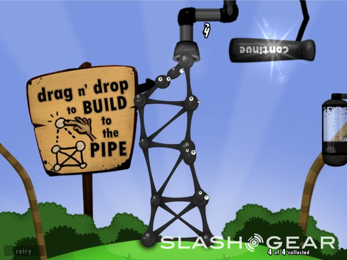 Since World of Goo is an indie game, it may appeal to a different genre of gamer. In addition, the familiar look of a Tim Burton-like user interface may also broaden the game's appeal. With the addition of this game the App Store has expanded its horizons. Overall, this game is going to be a huge success for 2D Boy as well as the App Store.