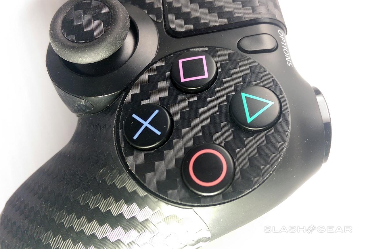 If you're going to wrap your DualShock 4, also go black – or at least dark gray. SlickWraps also offer a Gunmetal Carbon Fiber wrap that's nice to behold. This Carbon Fiber texture also feels nice to use – though we might end up taking out the joystick covers since rubbery is best.