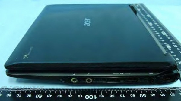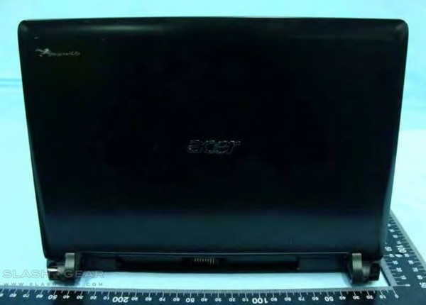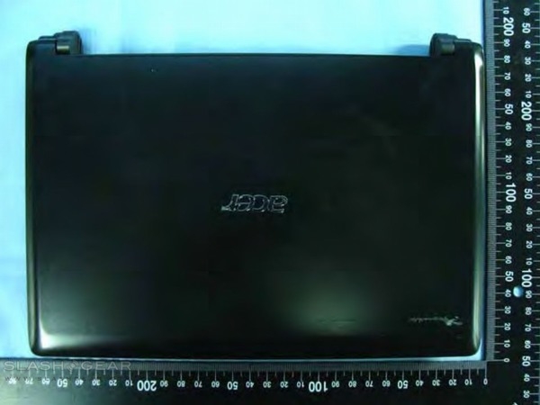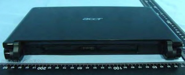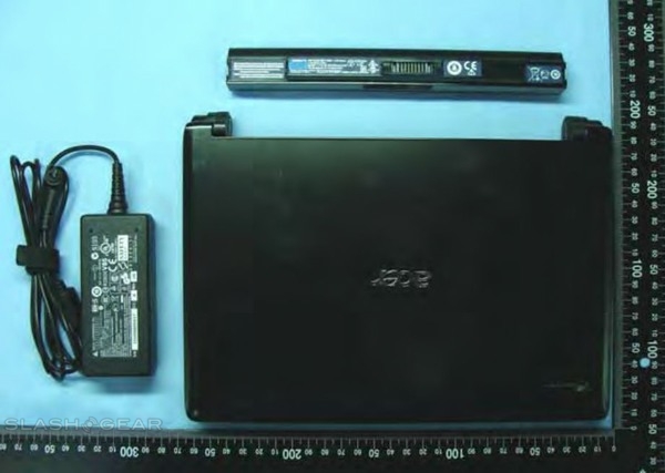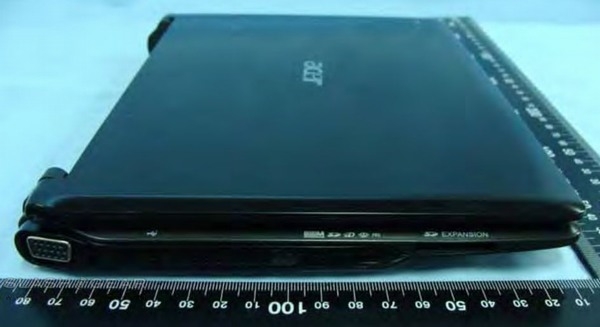 According to the FCC report, the specific model is the Acer Aspire One ZG8 AO530, and it measures approximately 25.5 x 18.5 x 2.4 cm. To achieve that, Acer has had to rework their ports; the ethernet and VGA ports, for instance, are repositioned to the netbook's hinges, although they still manage to squeeze in three USB 2.0.