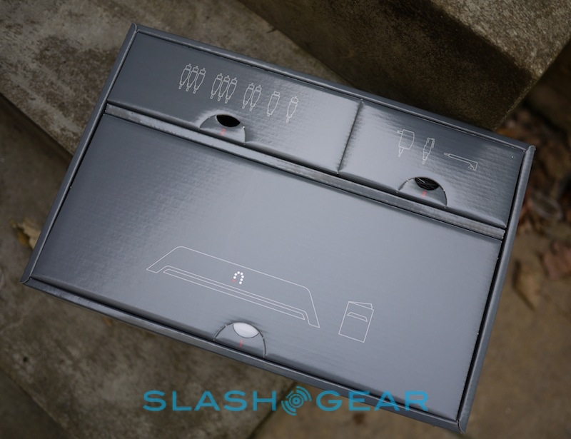 The Sling family resemblance is obvious, and in fact you'd be hard pressed – from the outside at least – to tell the difference between this new PRO-HD and the two year old original. A squat trapezoid measuring 13.25 x 5.75 x 2.25 inches and finished in high-quality matte black and silver plastic, it has minimal hardware controls (a reset button is the only physical control) and just three LED indicators: red network and power lights in the bottom right hand corner on the fascia, and a larger inverted-U that pulses and cycles during streaming.