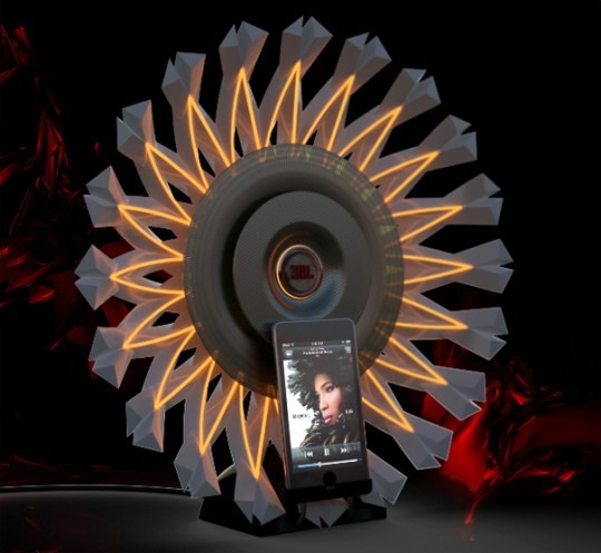 As different as a snowflake should be, these speakers definitely stand out. Even if they didn't light up, which they do, they'd still attract an eye or two while they sat on your table, or desk at your house. Thanks to designer Sylvain Gerber, we get to see what it would look like if a snowflake went all industrial on us, and sprouted a port for your iPhone.