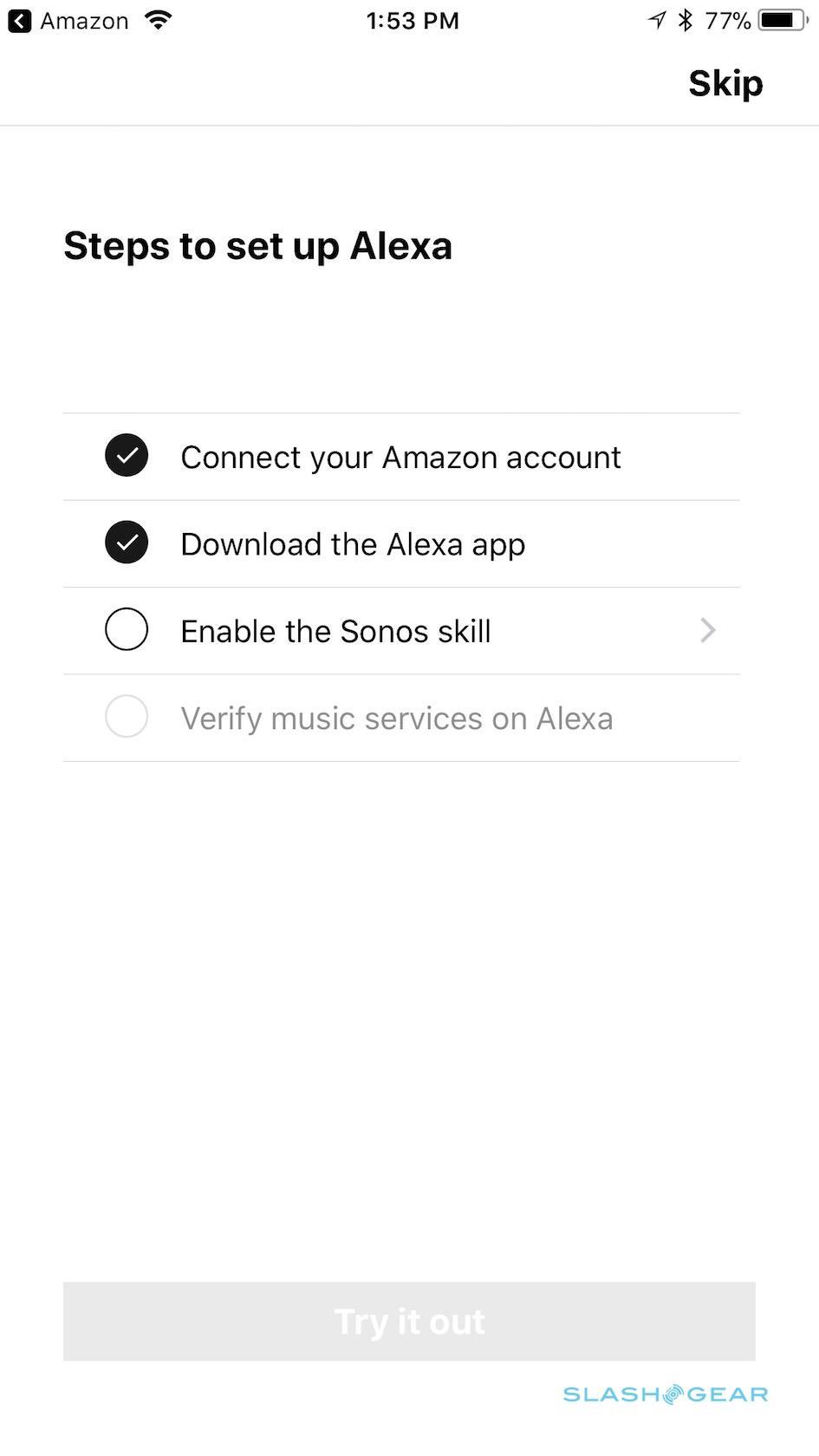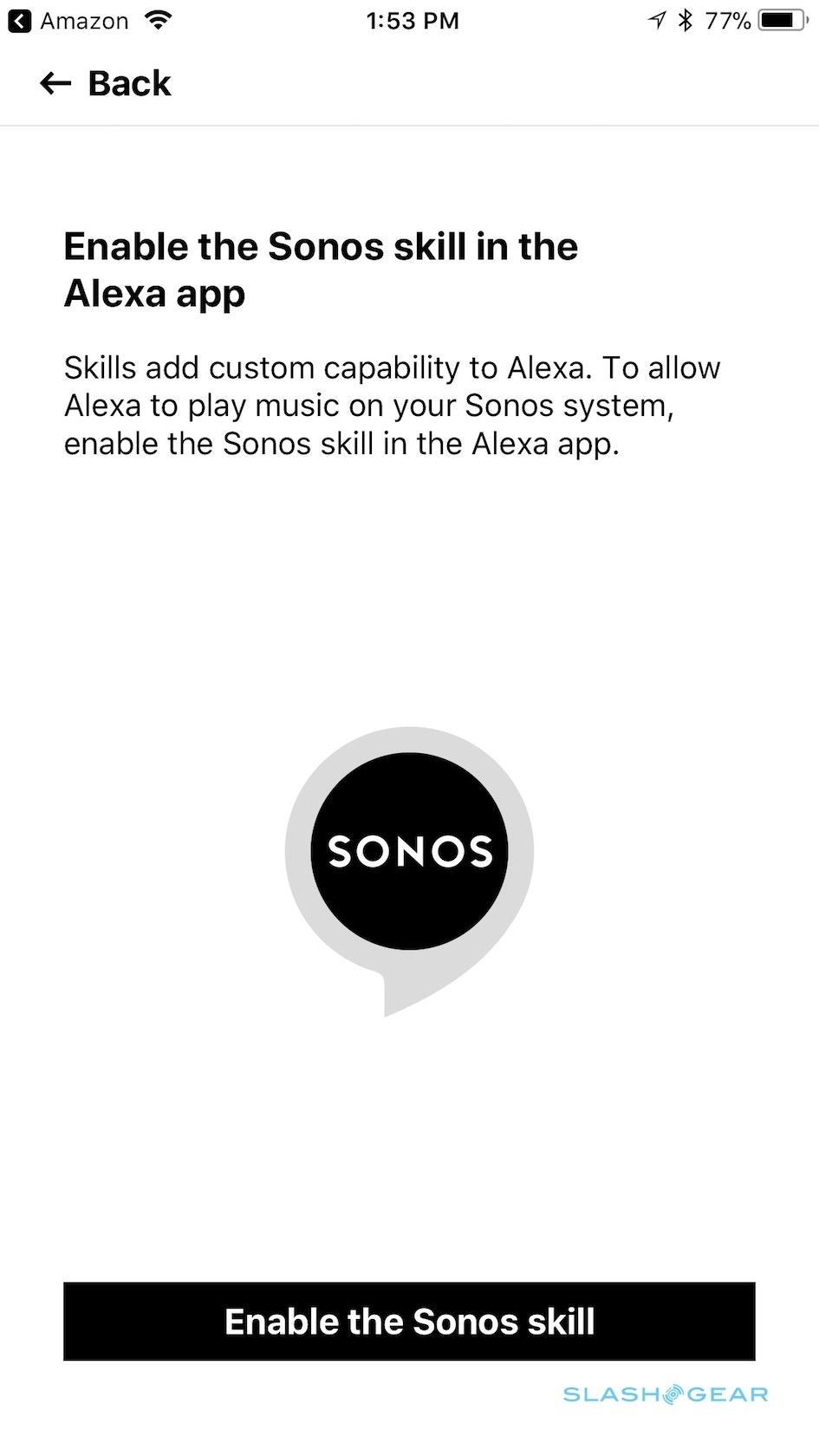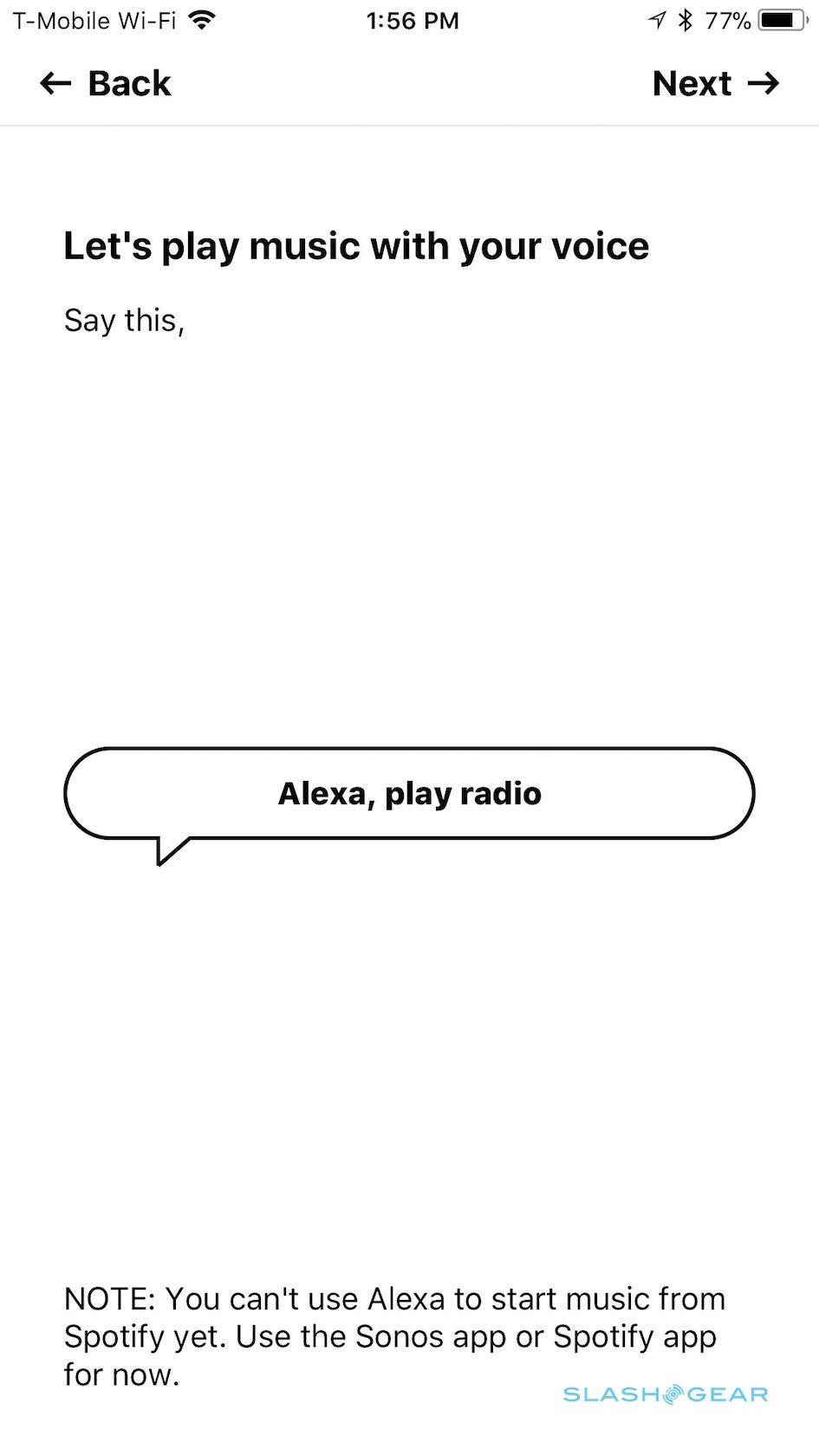 Of course, if you use the Sonos One as nothing more than a Sonos speaker you're missing out: the whole point is that you can use voice control, rather than just the Sonos app. There's some setup involved first, mind. After you've configured the speaker in Sonos' app, you then have to link your account with the Sonos "skill" in Amazon's Alexa app. That's also where you log into any third-party music services you might want to use, like Spotify, Pandora, iHeartRadio, and more.