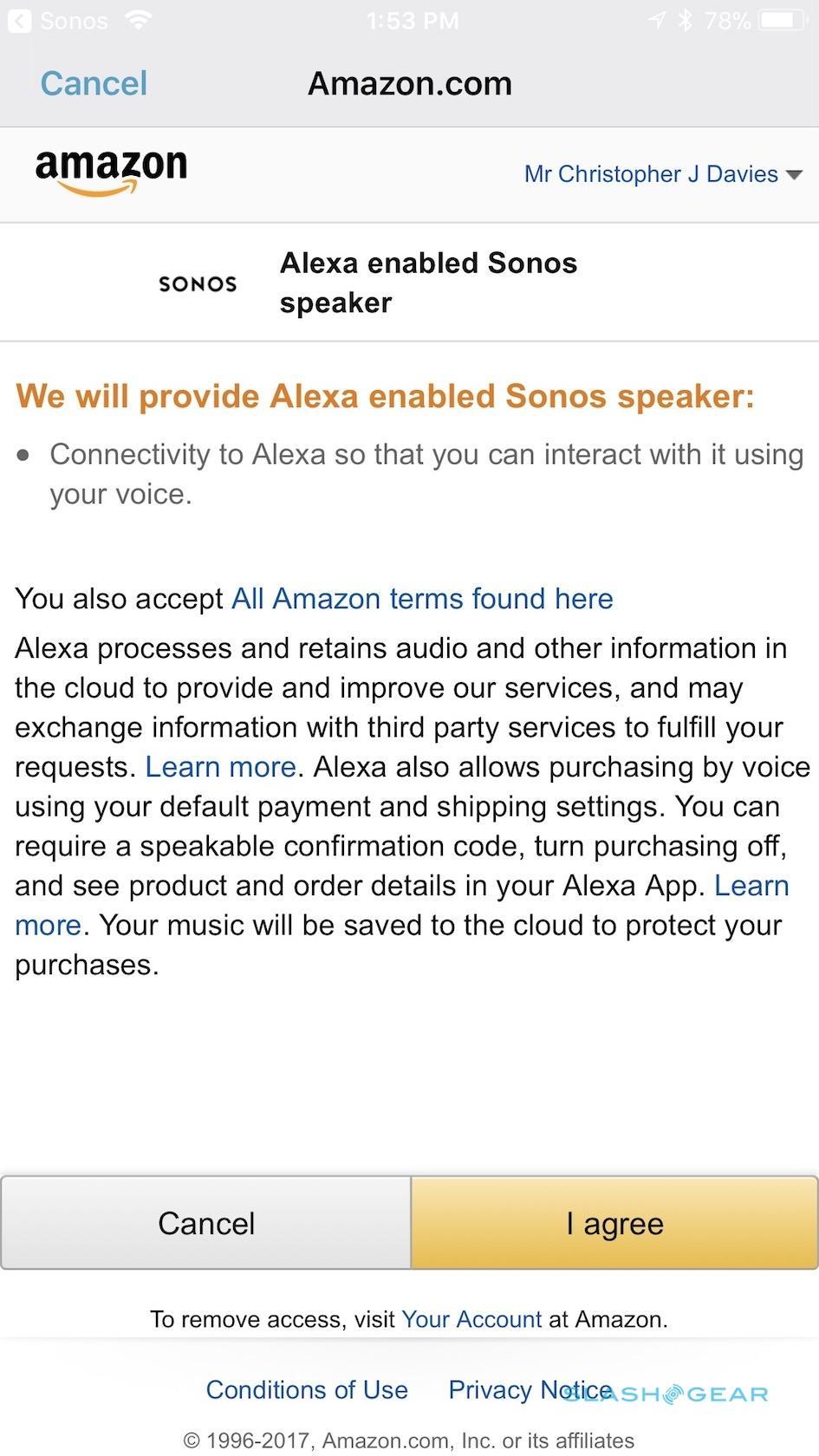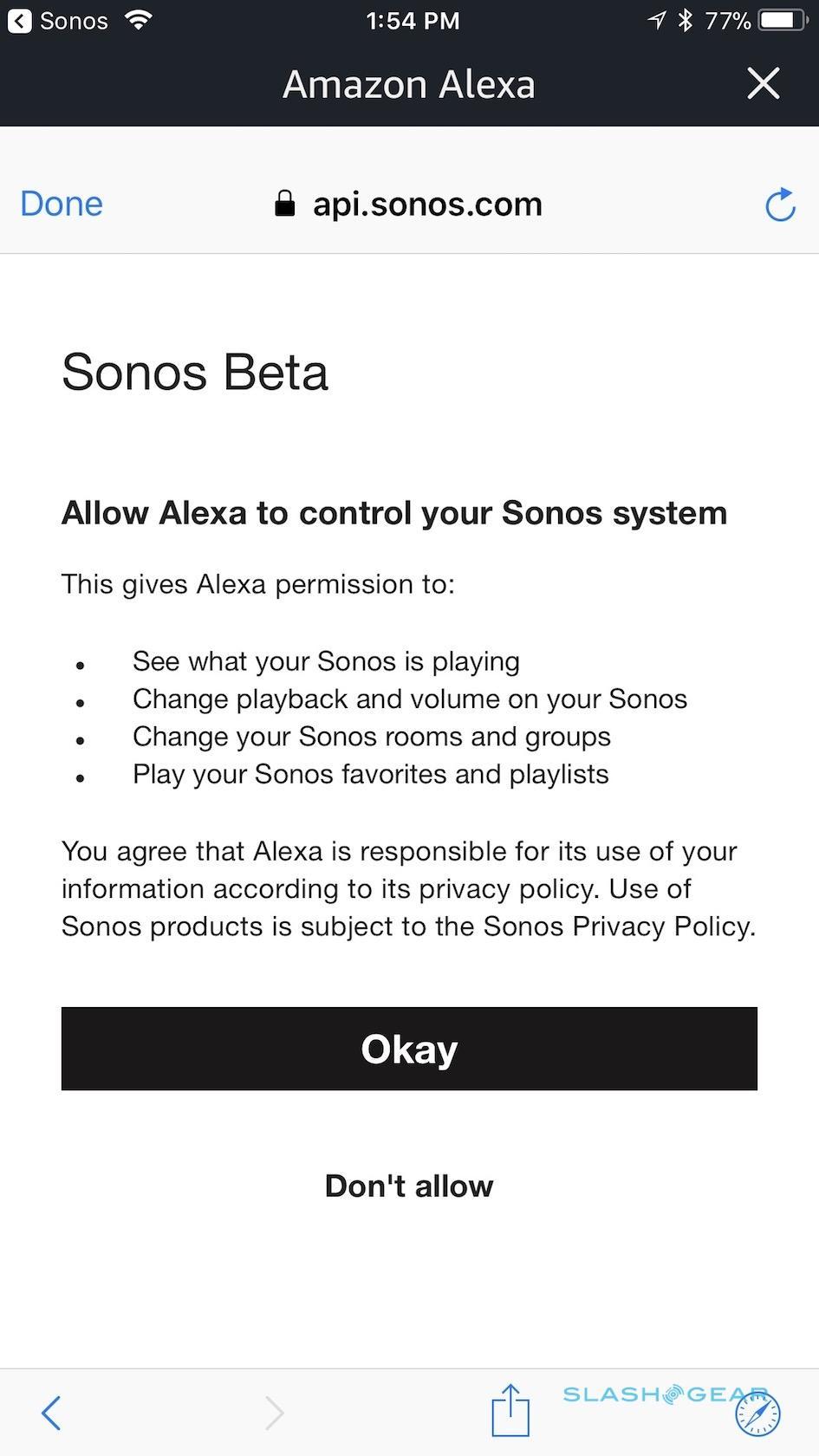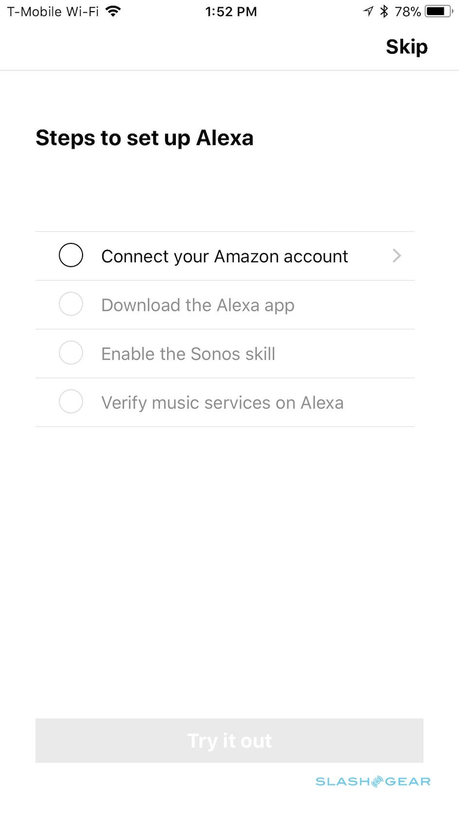 Of course, if you use the Sonos One as nothing more than a Sonos speaker you're missing out: the whole point is that you can use voice control, rather than just the Sonos app. There's some setup involved first, mind. After you've configured the speaker in Sonos' app, you then have to link your account with the Sonos "skill" in Amazon's Alexa app. That's also where you log into any third-party music services you might want to use, like Spotify, Pandora, iHeartRadio, and more.