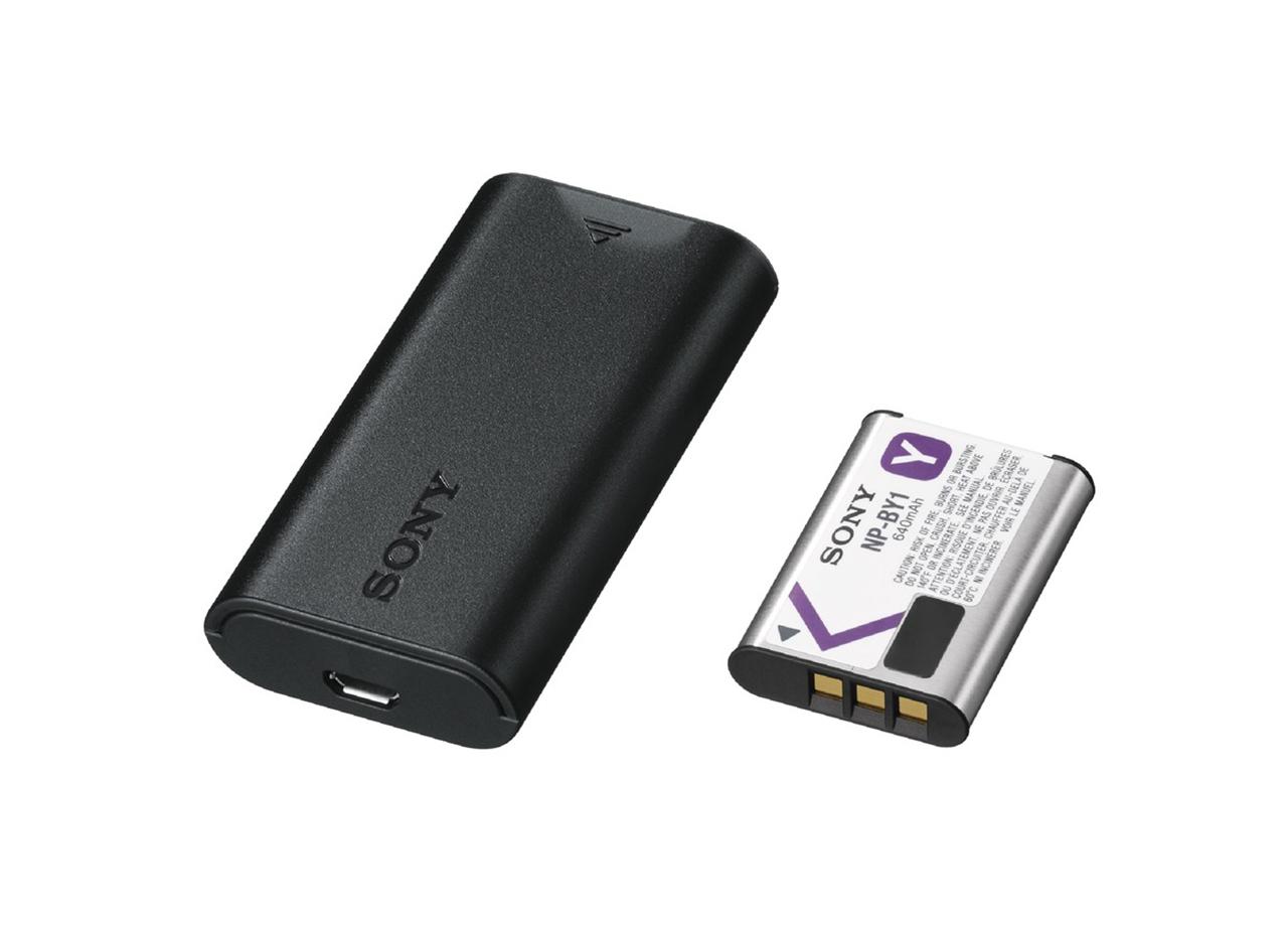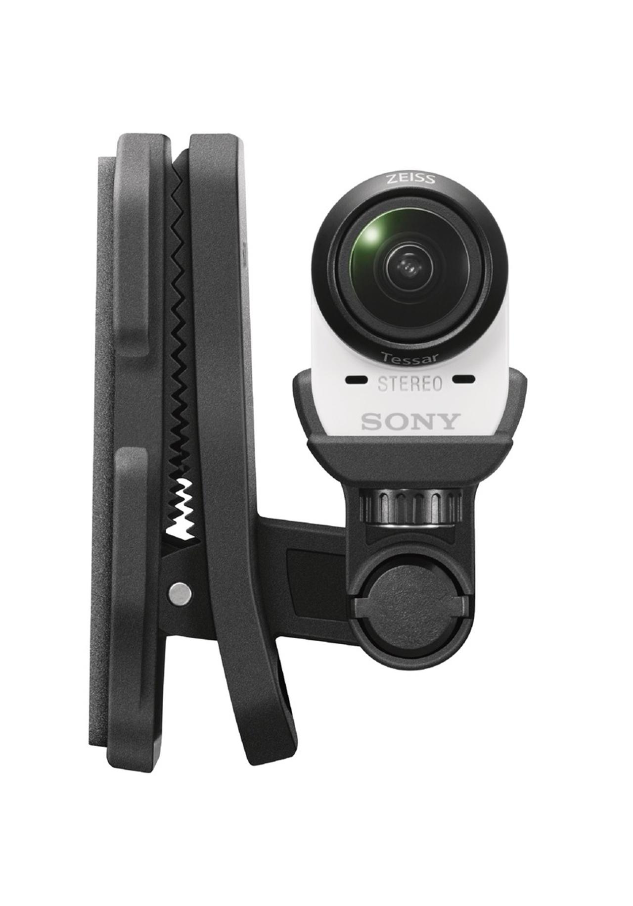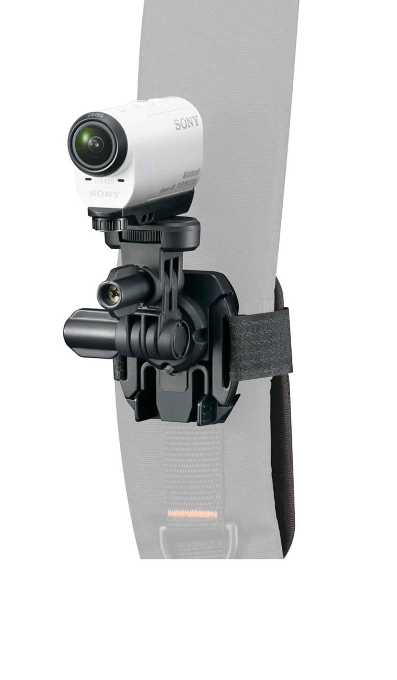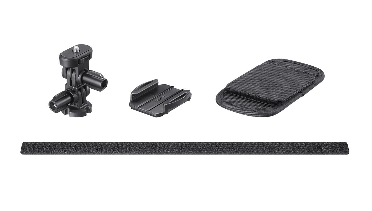 This camera works with a VCT-BPM1 Backpack Mount, a BLT-CHM1 clip-on mount for your baseball cap, a VCT-QHM football helmet mount, a NP-BY1 Rechargeable Battery Pack, and a combination USB charger and battery "ACC-TRDCY Accessory Kit". The whole lot should be available right around the same time as the camera itself.
