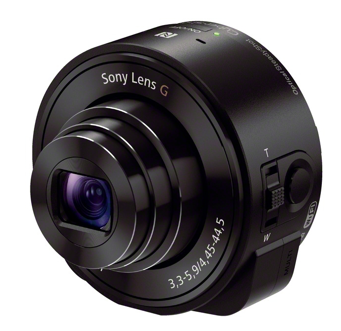 One of two new "Lens-Type Cameras" to be revealed this week is the Sony Cyber-shot DSC-QX10, coming in with an 18.2-megapixel Exmor RCMOS sensor and a Sony G Lens with 10x optical zoom. This is the smaller of the first two Lens Cameras to be revealed by the manufacturer, this device (obviously) also the more easily portable of the pair. This device weighs in at less than 4 ounces and measures in at 2.5 x 2.5 x 1.3-inches.