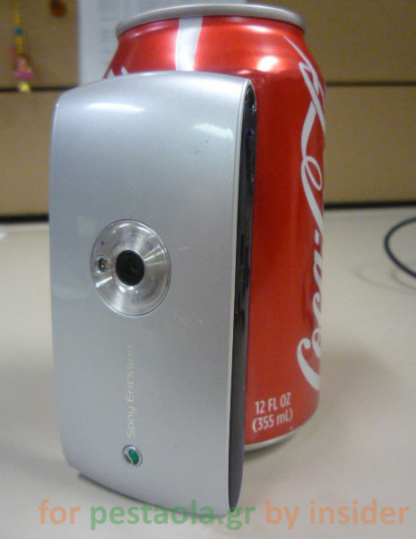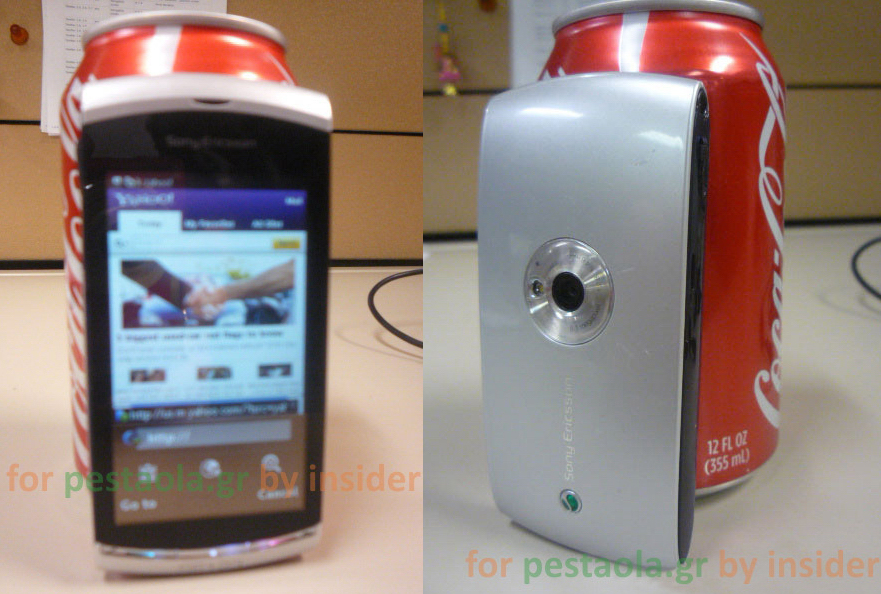 The floodgates are open and Sony Ericsson's Kurara is spilling through them. Having been spotted in the wild yesterday, the touchscreen Satio sibling has made a second appearance getting up close and personal with a carbonated beverage. No more hardware specs to share – though the HD logo on the back is missing on this particular unit – so we're left with the expectation of a 3.5-inch AMOLED touchscreen, Symbian S60 OS and 8.1-megapixel autofocus camera.