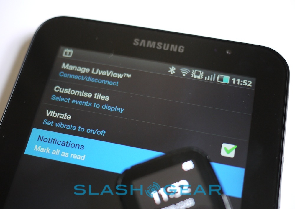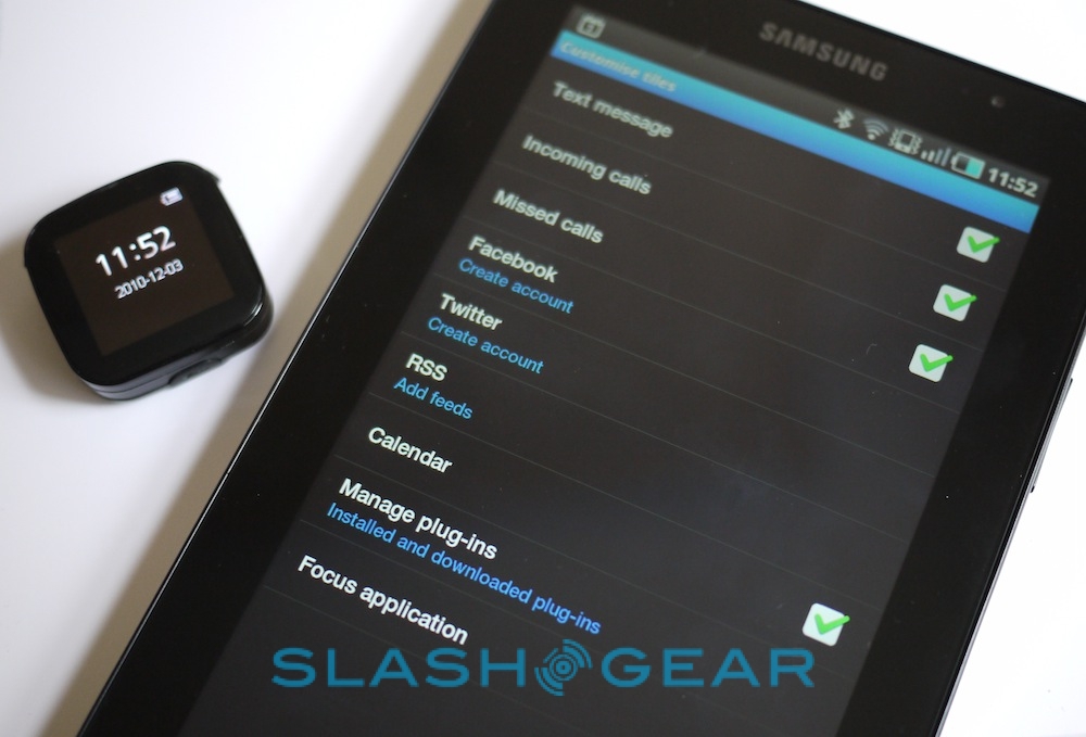 Out of the box, the app supports incoming calls, SMS, Facebook and Twitter updates, along with basic media player control, RSS headlines and date/time. It's straightforward to toggle each on or off from the app's settings – if you don't want to use the RSS functionality, you don't have to see it on the LiveView's display – and you sign into Facebook and Twitter independently from any other apps you may be using on your phone. If you're reading an SMS or RSS excerpt and want to review it (or, indeed, reply to it) on your phone, hitting a button automatically opens that page on the handset itself.