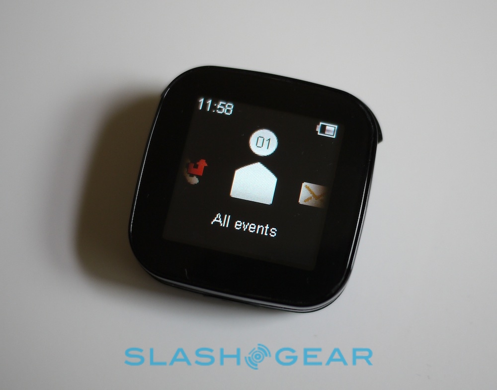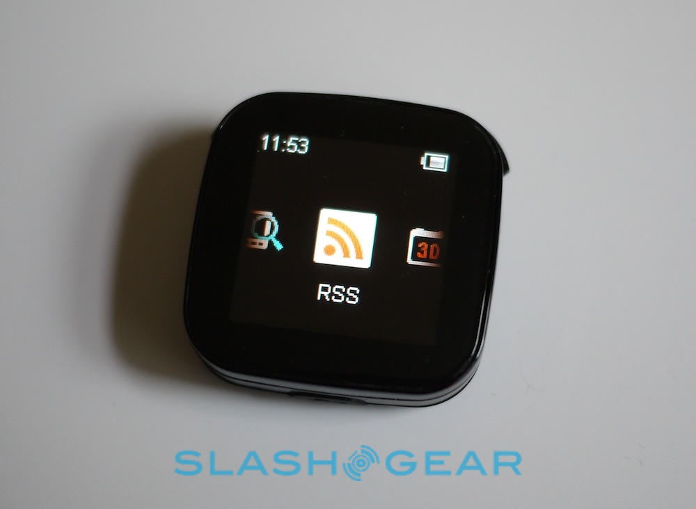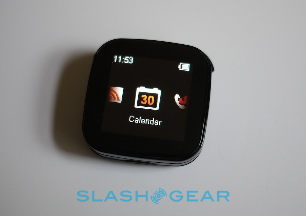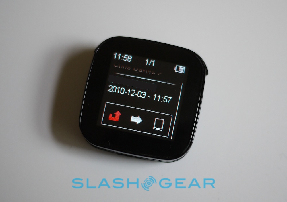 Unfortunately there's no touchscreen – likely to keep the price down – and instead the bezel around the display hides four touch-sensitive directional controls, with the right physical button acting as select. It's not as intuitive as, say, sweeping the display on the iPod nano. As well as flashing its notification light, the LiveView also has a vibration motor inside for discrete updates of new messages, calendar appointments and the like. It's not the most powerful we've seen, but it'll get your attention, particularly if you have the display clipped to your wrist.