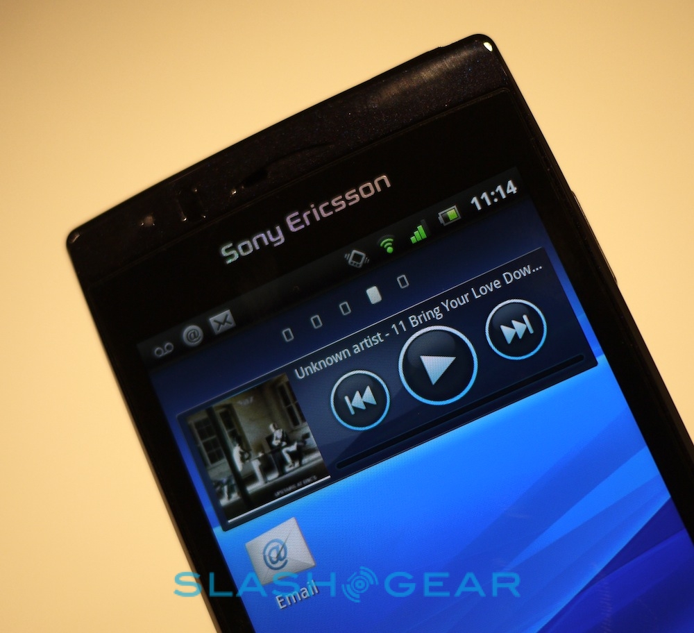 Conspicuous by their absence are NFC – Sony Ericsson say they're investigating it for future devices – and a front-facing camera; there's also no PlayStation gaming integration, nor media downloads with Sony's Qriocity service. That could come, though; the SE team are in talks with Sony about a partnership later in the year, though it'll be an optional system rather than the only way to get new content onto future Sony Ericsson handsets.