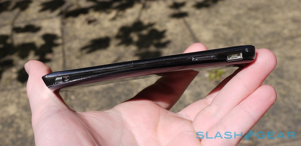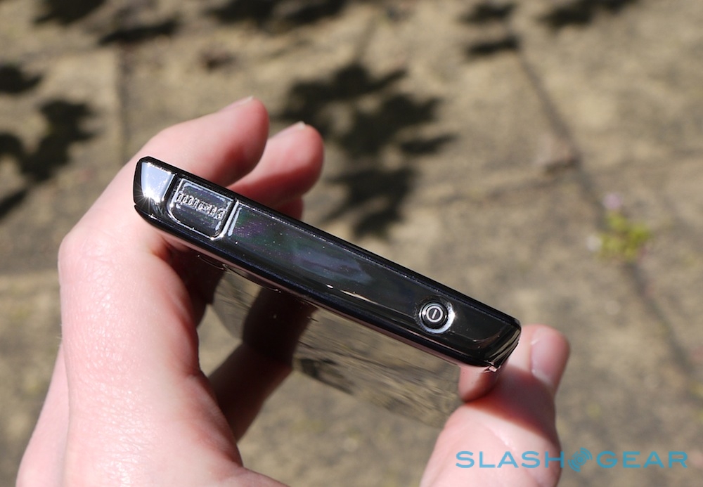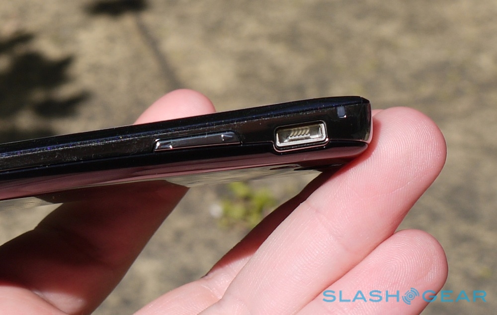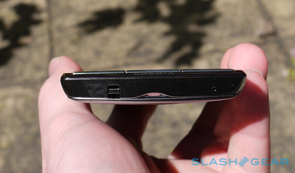 Sony Ericsson has dumped a dedicated search button in favor of three front-panel keys – back, home and menu – though you can call up search by long-pressing menu. Ports include a 3.5mm headphone socket on the left edge, a microUSB socket on the right edge – above a tiny, fiddly volume rocker, with a camera shortcut further down the side – and then a power/lock button (also pretty tiny and pretty fiddly) on the top next to a micro HDMI port covered with a little dust-flap. The plasticky battery cover – finished with a two-tone paint job – pops off to reveal both the microSD and SIM slots are blocked by the battery, so there's no hot-swapping to be done here.