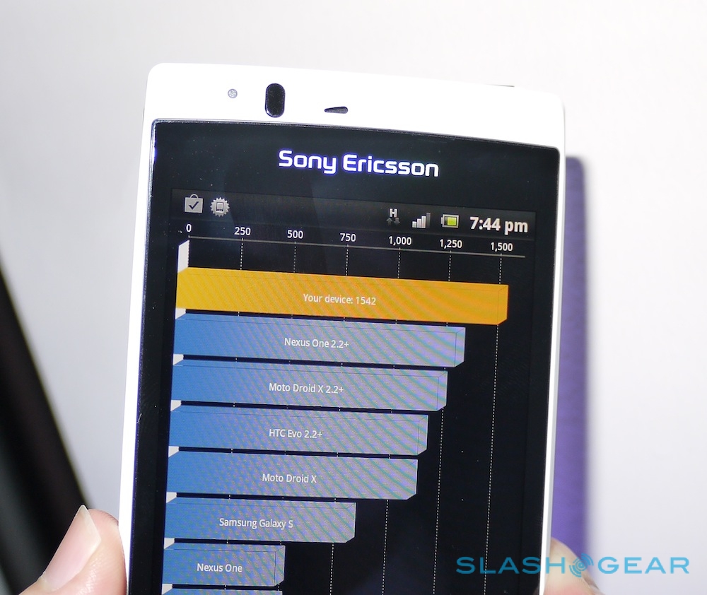 It's the faster processor that is the real draw here, and it does make the Arc S feel swifter. Apps load with less delay and there are fewer pauses during heavy webpage loading and when navigating through a well-stocked Gmail inbox. In terms of pure figures, we ran Quadrant Standard and the updated Sony Ericsson scored 1542, almost exactly what you'd expect for a 40-percent bump in speed over the original Arc's performance.
