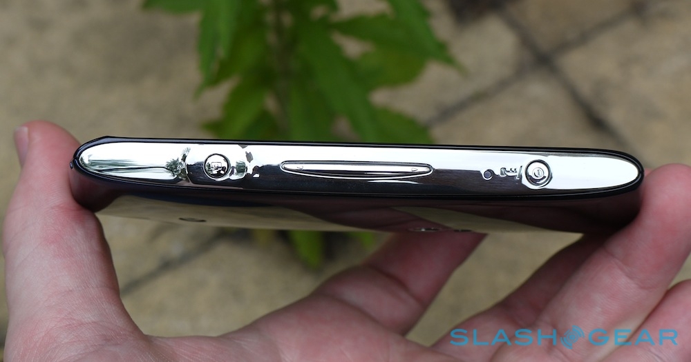 Under the display there are three buttons for back, home and menu, while a dedicated camera shortcut, volume rocker – placed somewhat awkwardly halfway down the phone – and a decidedly wobbly and fragile-feeling power/lock button are on the right edge. Three colors are offered, either metallic blue, silver or red.