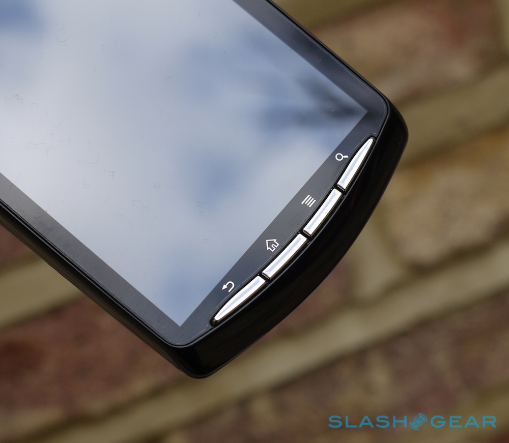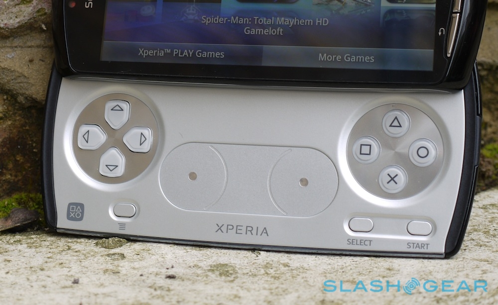 Of course, it's the gaming controls that have prompted the most interest. Slide up the spring-loaded display – something that's easy to do one-handed – and you find a D-pad, PlayStation-style face buttons (triangle, square, circle and cross), and two touch-sensitive analog controls that attempt to mimic the physical analog pads on a DualShock. On the bottom left is a second menu button (useful, since it means you needn't reach up to tap the fascia key) while on the bottom right are select and start buttons.