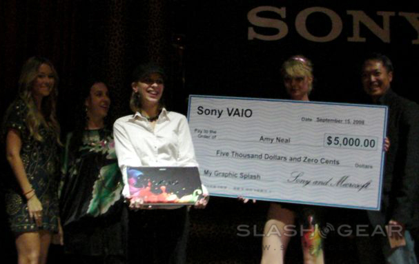 Earlier in the year, Sony kicked off a competition inviting would-be artists to submit case designs for the company's Graphic Splash notebooks. The top ten entries were offered up to online voting, with the final three winners not only being invited to NYC for the unveiling of their limited edition notebooks but getting $5,000 too. SlashGear was invited to attend the catwalk premiere of the three custom Graphic Splash VAIOs; check out the gallery and video after the cut.