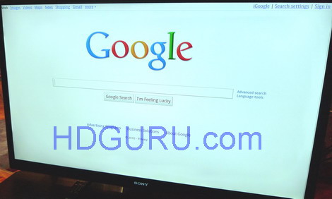 The NSX-46GT1 has a slim depth, and they believe it features LED edge lighting. The back of the HDTV is white, and there's chrome plating around the stand. Sony's first Google TV had a 46-inch display. Google's demo of the TV was possible thanks to a wireless USB Internet dongle that was connected directly into the back of the HDTV. As we should expect, you can watch your TV the way you want, but if you get bored you'll be able to search Google as much as you want, as well as access the Internet proper thanks to Google's Chrome browser. Interestingly enough, you'll be able to surf the Web from Sony's remote (which wasn't demoed), or from an Android device. That's also including an iPhone.