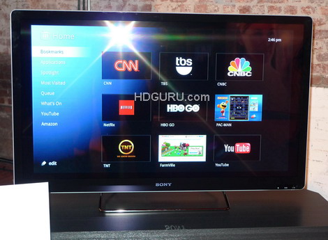 Despite the fact that Sony just announced that they'll be showing off their first Google TV-integrated HDTV on October 12th, that didn't stop the company from bringing the set to Best Buy's holiday preview press event. HD Guru was there, too, and they managed to get some preview time with the HDTV, called the Sony NSX-46GT1, and take some exclusive first-shots.