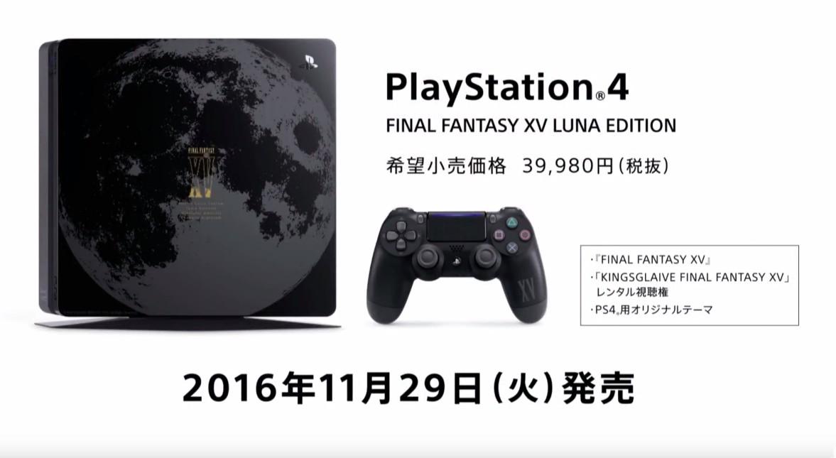 Sony has unveiled some new gaming gear in Japan that fans of the PS4 and the PS Vita portables will appreciate. The special edition PS4 is the PS4 Final Fantasy XV Luna Edition and it will be released in limited quantities on November 29, 2016. The MSRP for the special edition PS4 console will be 39,980 yen.