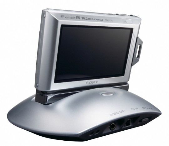 Hot on the heals of the new Cyber-shot TX1 and WX1 comes this three-legged curiosity, Sony's Party-shot. Intended to grab the photos you're too busy, drunken or generally conspicuous to snap yourself, the Party-shot dock works with the two new cameras and offers automatic face-detection, 360-degree pans and button-free photos.