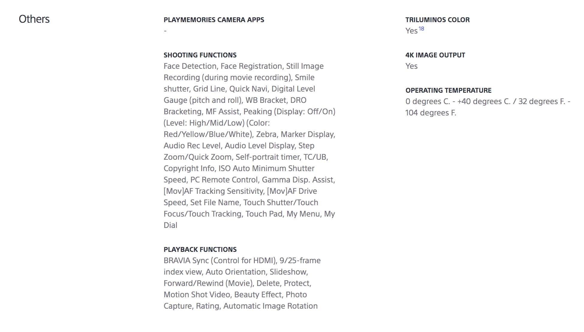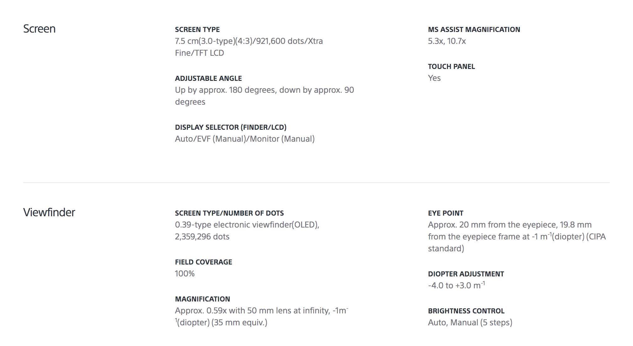 Above you'll find a whole bunch of specifications for this camera, via SONY. Users will find this tiny camera available in or around August of 2019. At its release date, the camera will cost around $1,200, and it'll be available with bundles of accessories, a shooting grip, and other add-ons throughout its official support lifetime.
