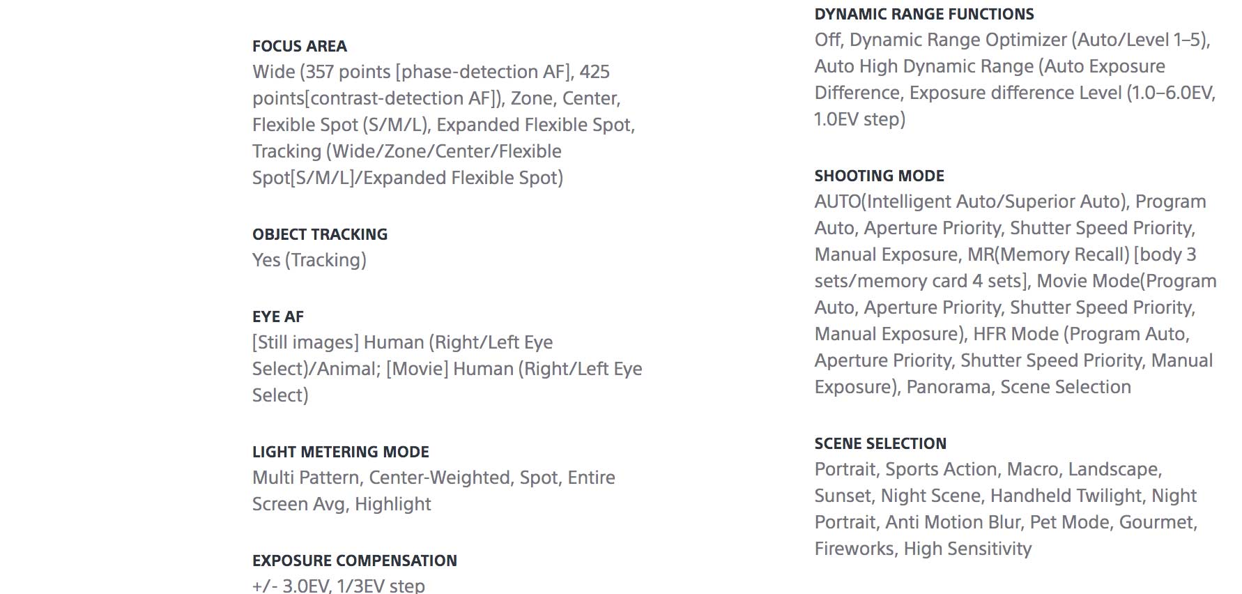 If you're a long-time Sony camera user and you've enjoyed the A9 and A6400's phase and contrast-detect AF points, you'll be glad to see them in the mix here once again. That includes 425 phase- and contrast-detect AF points – more than you could ever possibly need for a high quality always-in-focus end-product.