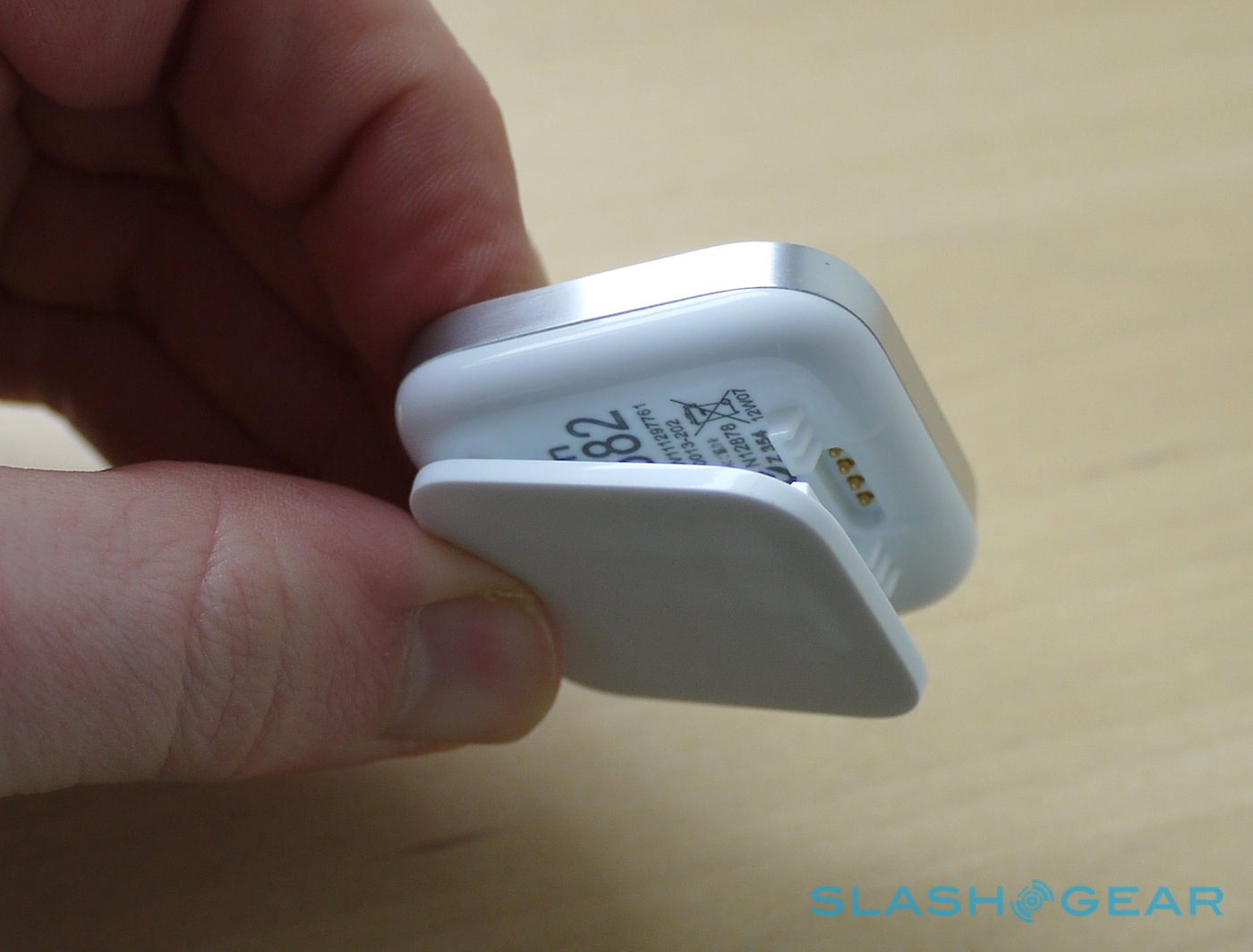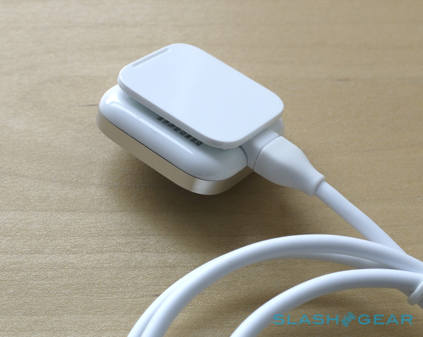 It's also used with the proprietary charging system. Rather than accommodate a microUSB port, the SmartWatch uses a special USB cable terminating with a hooked end, that clips into place against charging terminals. It's a clever approach, though it does mean you have to carry the cable if you want to be able to top the SmartWatch up on the move.