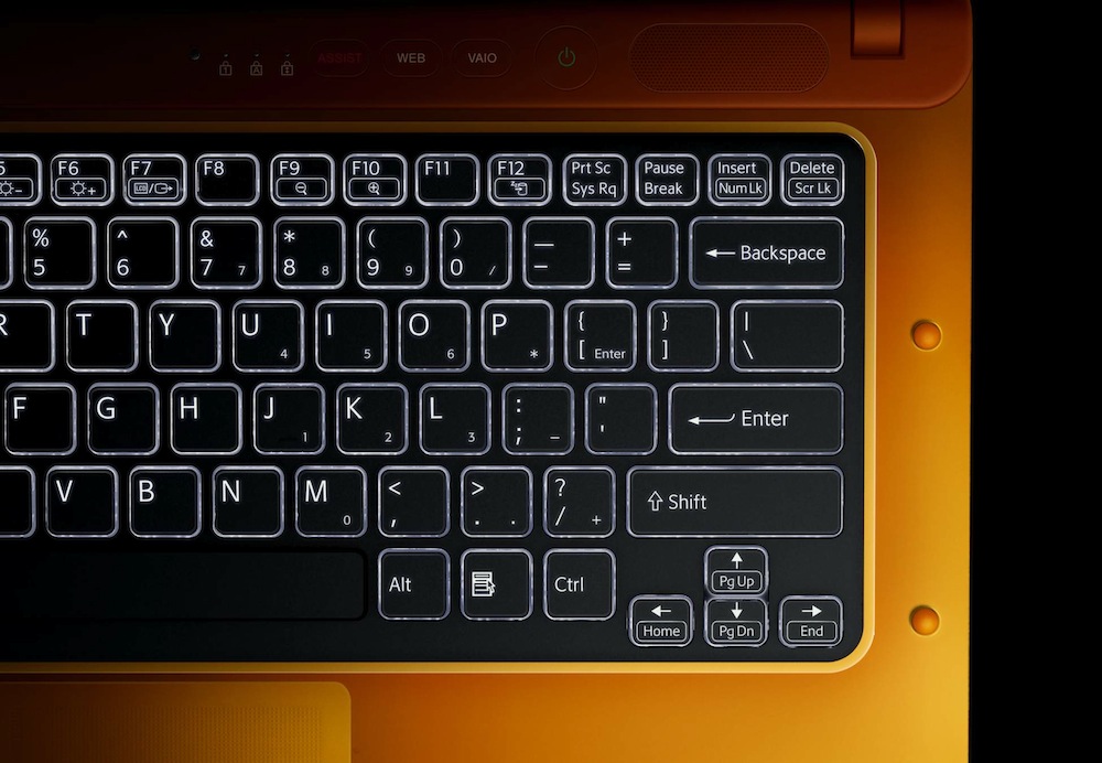 The latest VAIO C Series showcases a radical style direction by Sony that stands out from run-of-the-mill notebook PCs. A choice of fashion colours include two special orange and green 'light emitting' options. This audacious design scatters light along edges of the translucent PC lid and other key surfaces to create a dramatic glow effect.