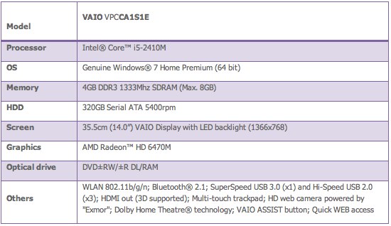 The brilliantly styled new 14" VAIO C Series of notebook PCs by Sony is available from March/ April 2011 depending on country.