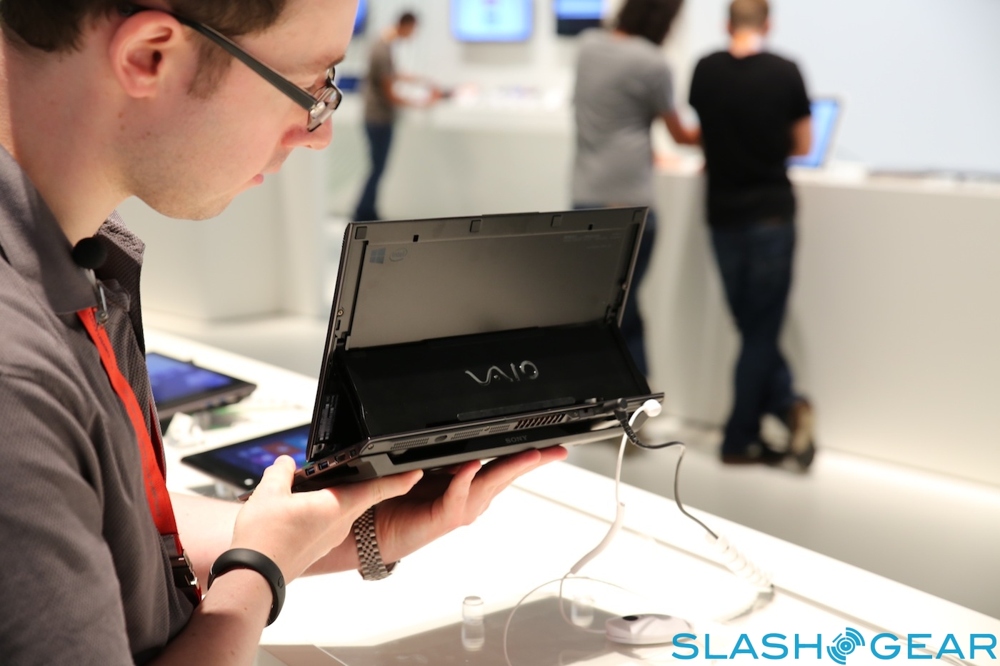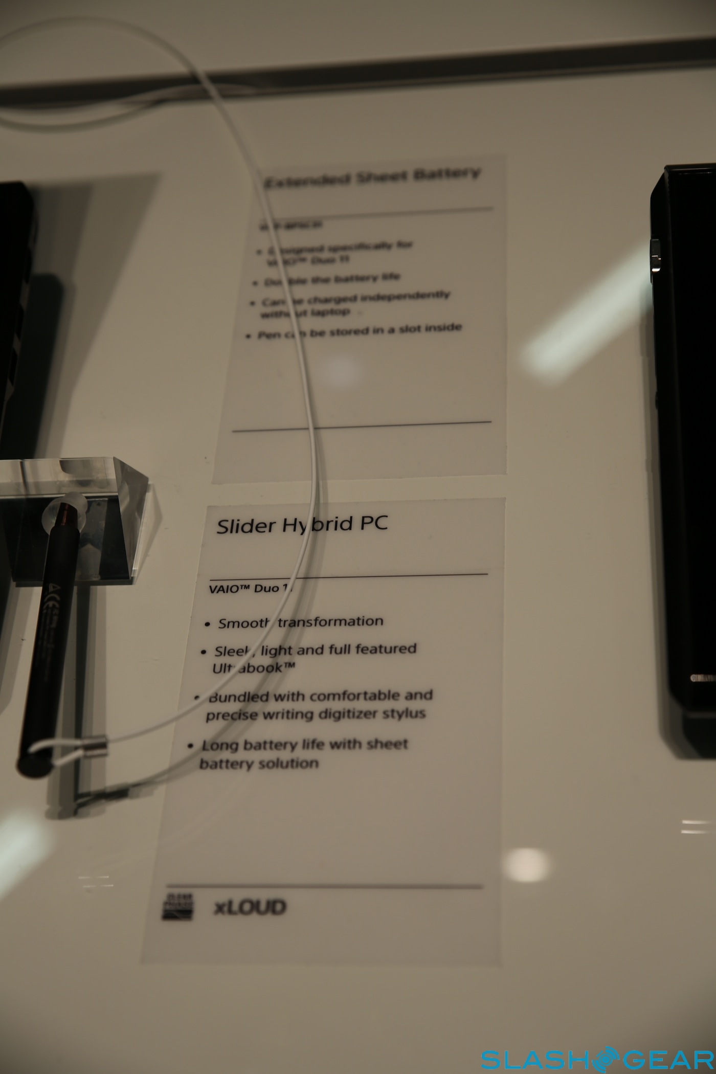 VAIO notebooks generally look the part, especially the more expensive ones, and the Duo 11 follows in those footsteps with an angular black casing that's a nice diversion from the usual round-cornered fare. The glossy plastic is a fingerprint magnet, of course, and Sony's non-final hardware showed some flex when you pull the screen open, but once upright and in place – in a single, non-adjustable angle – it stuck fast no matter how roughly we jabbed at it.